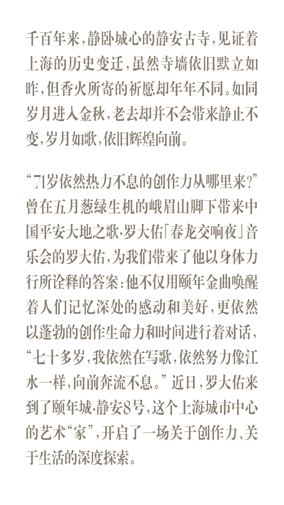 “城芯”的活力,无疑也是71岁的罗大佑至今所拥有的创作力源泉之一,从纽约、香港、北京、台北.....他总是生活在城市的中心地,也总是站在创作的“中心地”。