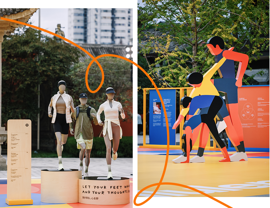 10月18日,lululemon携手艺术家Geoff McFetridge呈现的“好状态趣动场”登陆成都太古里。城市地标太古里漫广场变身“游乐场”,通过艺术装置和多元的社区课程,邀请人们关注身体、心理、社交三个维度的幸福感,鼓励更多人去动,让身心成为最佳玩伴。