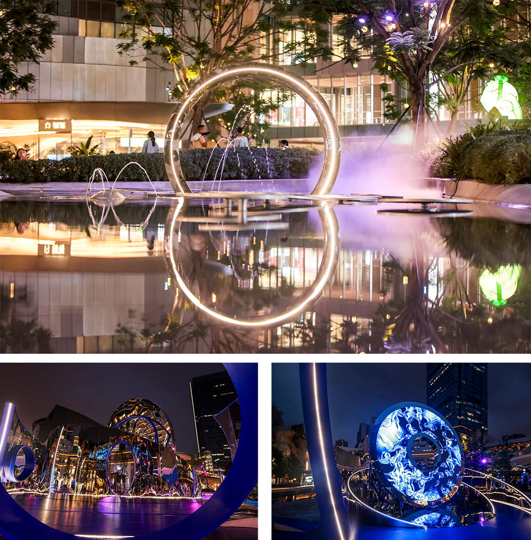作为广场「无界」品牌的启幕之作,本次艺术展深度挖掘“方”与“圆”的东方哲学内涵。“方”代表确定的城市格局与脉络,“圆”则象征着流动的想象与包容的精神。艺术展通过“循间”、“圆游”、“回响”、“叠漪”、“无尽” 等多组大型互动装置,构建了一段从“进入”到“沉浸”再到“共鸣”的叙事体验。作品巧妙运用镜面、光影与水景,延伸感知的边界,邀请公众在行走与互动中,思考自我与空间、个体与城市的关系。