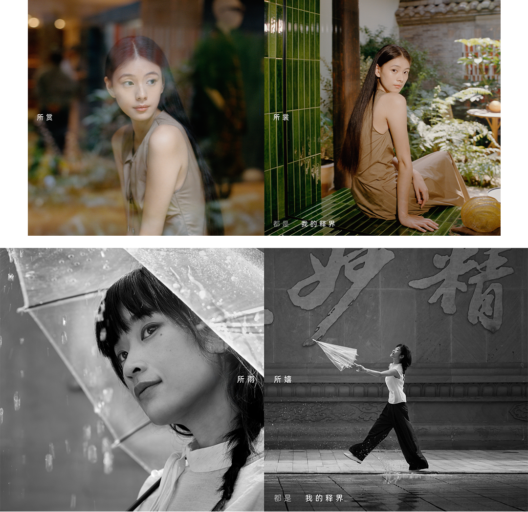 两位摄影师以各自鲜明的镜头语言,展开一场跨越时代和地域的全新视觉对话。以此再现成都太古里传统与现代交融,“快耍”与“慢活”皆宜的双面气质,以及成都多元包容的城市气质对人与空间的滋养,共创出“我的释界”全新视觉表达。