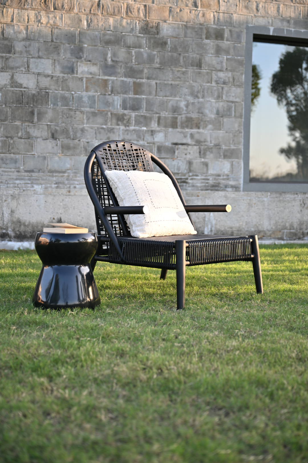 户外就餐空间中,院半锦瑟·餐桌与餐椅的和谐组合完美呈现了中式户外大宅庄重中不失细节的格调。餐桌设计灵感源于流传千年的国家非物质文化遗产云南白族“甲马”木刻版画,将自然山川与树石纹理融于拓印,呈现出细腻肌理与野奢意境的相互交融。简约的设计语言,让古老的艺术在当下拥有了全新的艺术表达,更符合现代生活的审美情趣。同时,桌面材质也采用了高分子面板,具有超高强度耐用性,以抵抗多变的户外环境。