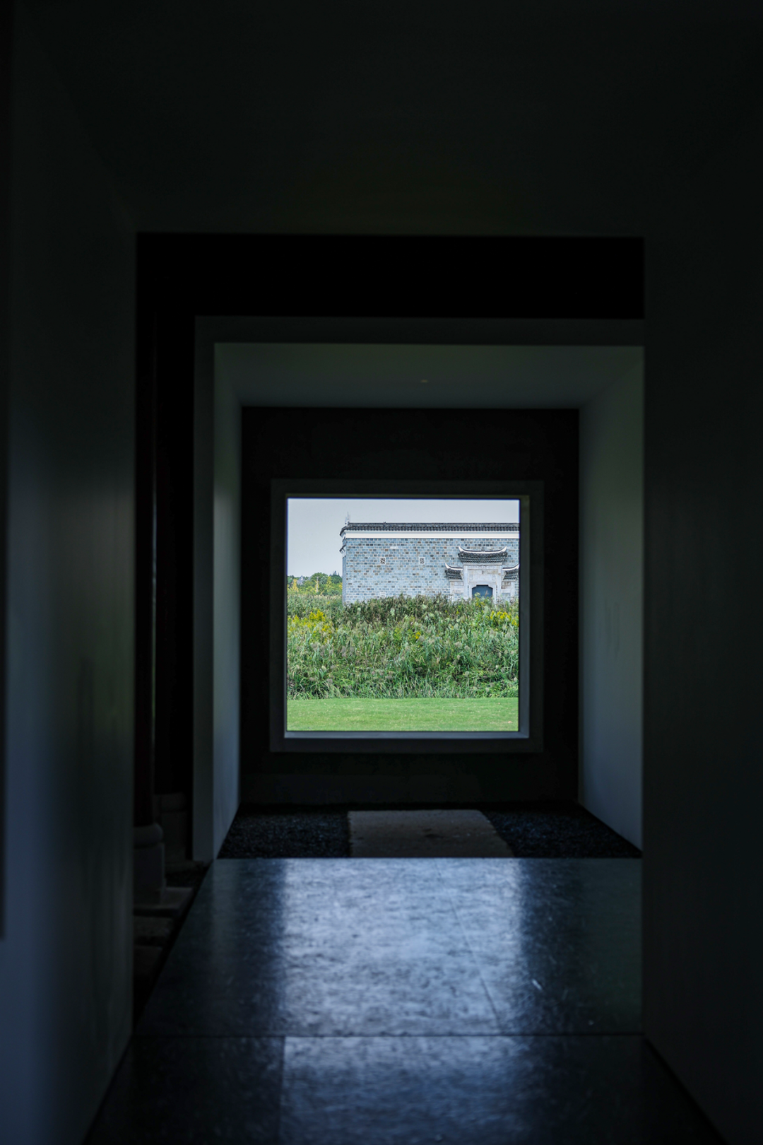 古宅原有的线条与肌理被最大限度的保留。自然光线从天井注入室内,开启探索空间与精神世界的序章。在室内空间的各个角落,大面积的通透立面消弭了室内与自然的边界,让视线沿着室外风景的四时流动不断延伸出去。框景、借景等传统的园林构建手法,不仅在空间上创造了“厅连院、院接林”的递进关系,更为人们增添了欣赏的意趣。