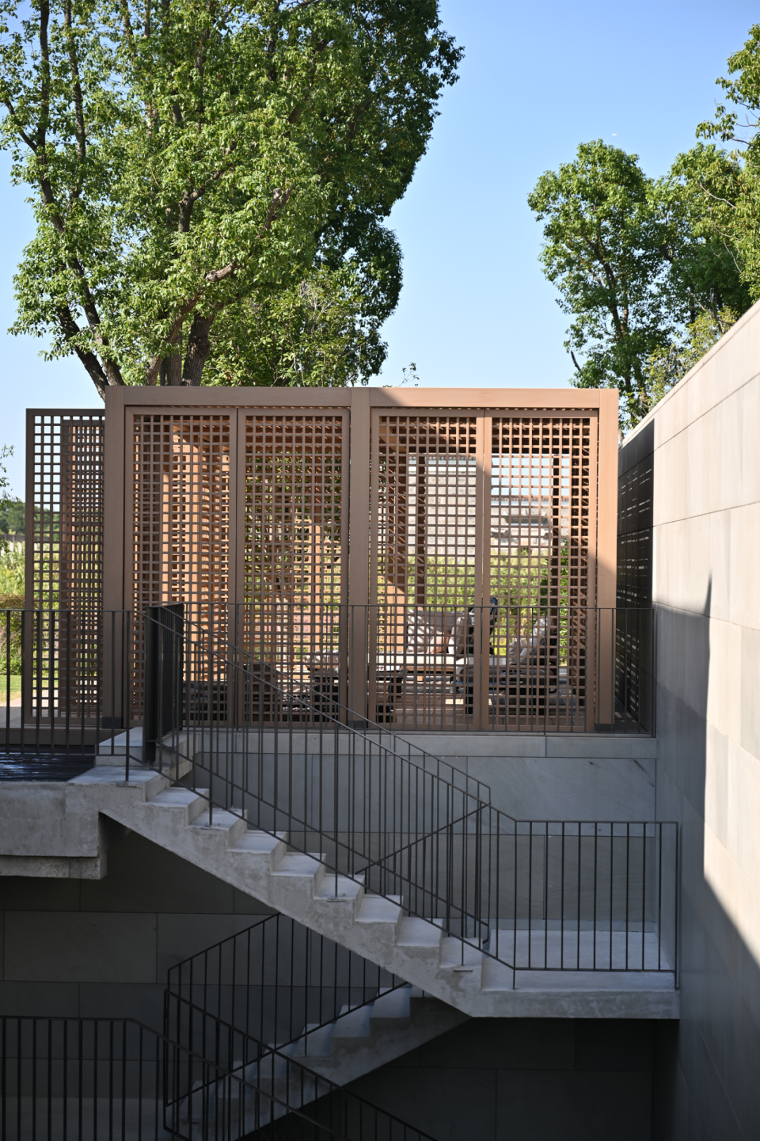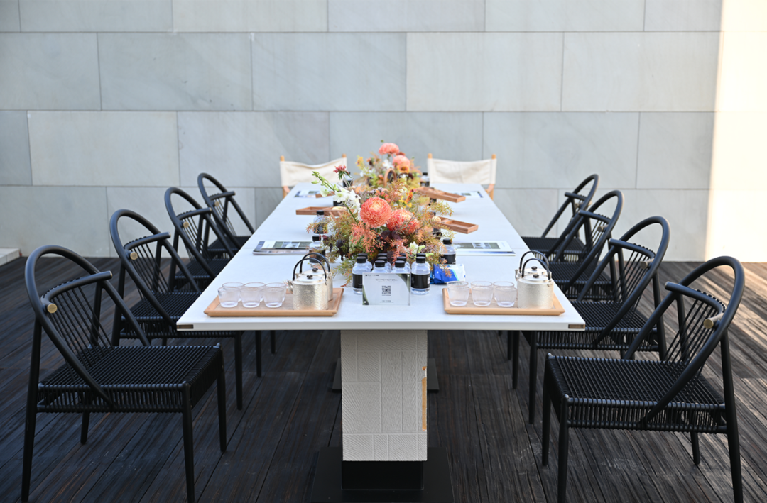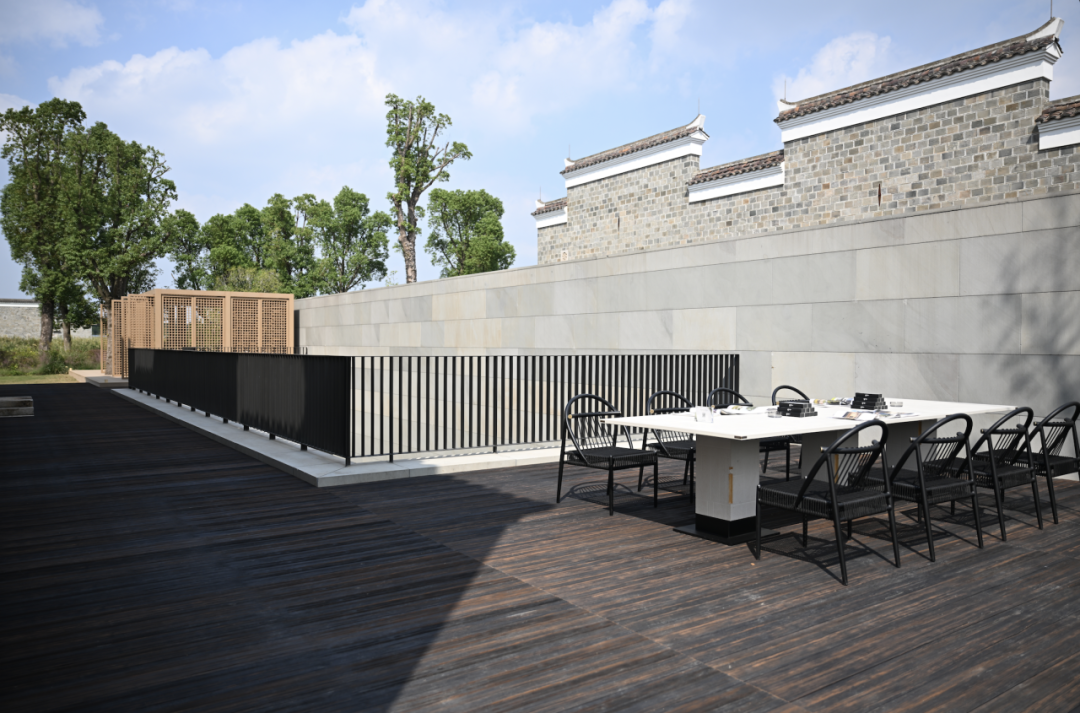 步入户外生活空间,游园的动线依旧延续。设计师通过院半产品的灵活组合,构筑起了一个更具现代意象的空间。开放式的布局,让会客、品茗、就餐、观景、游园等多样化功能在户外场景中实现室内外的自由切换。院半所具备的“美学契合”与“功能落地”这双重特质,也为梁建国带来了新的灵感,“户外产品不再是空间的附属,而是“东方游园”叙事的重要载体,实现了意境表达与日常使用的平衡。”