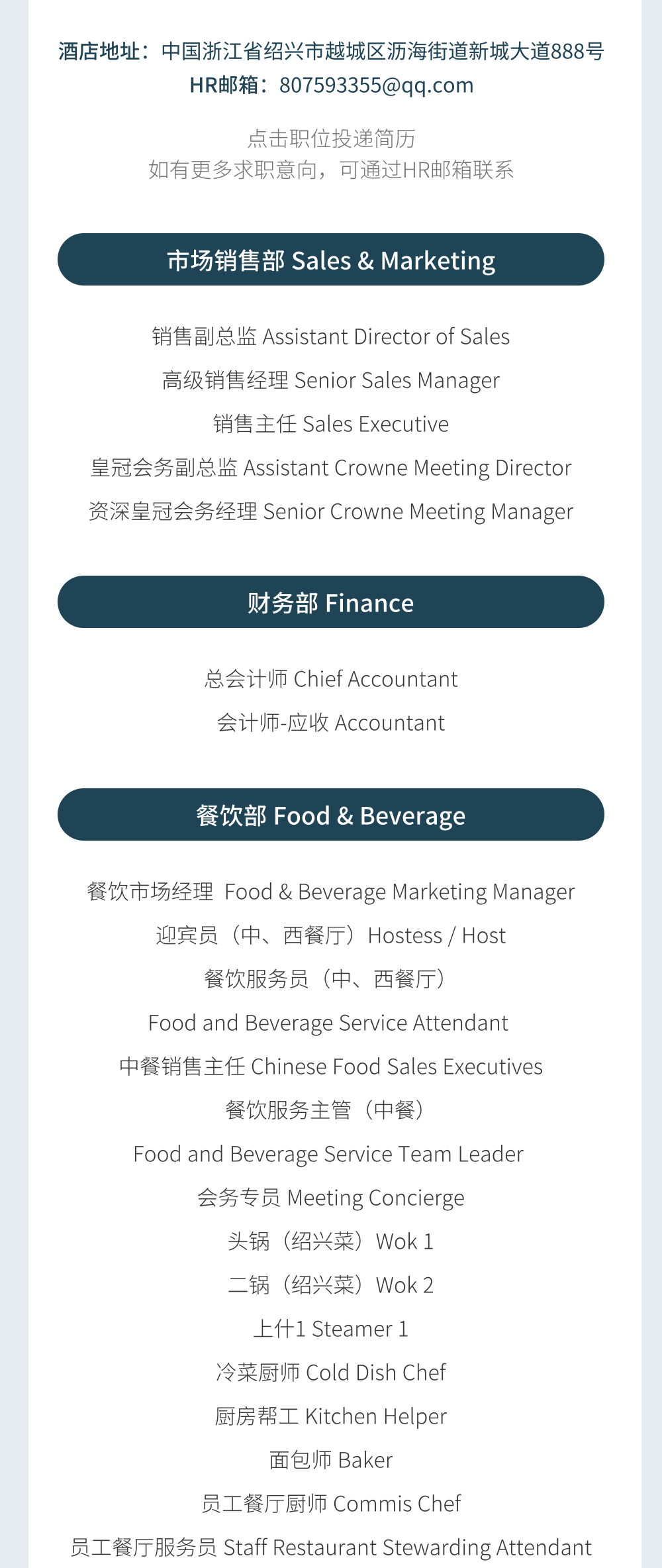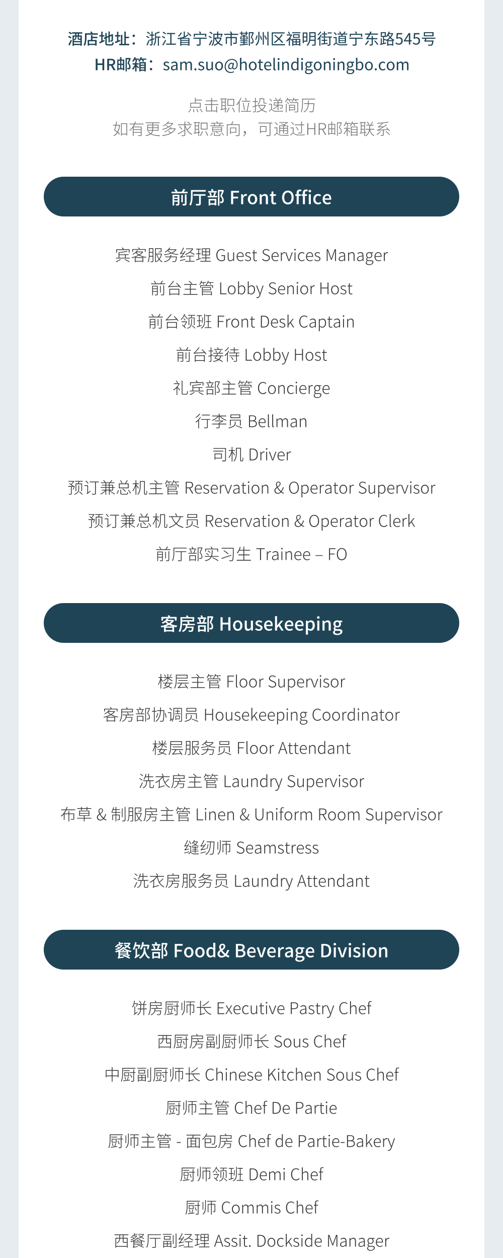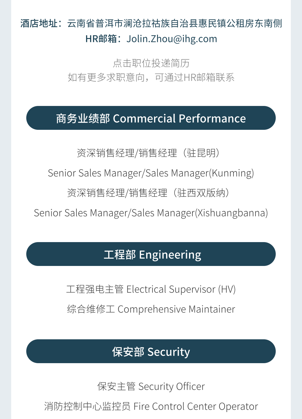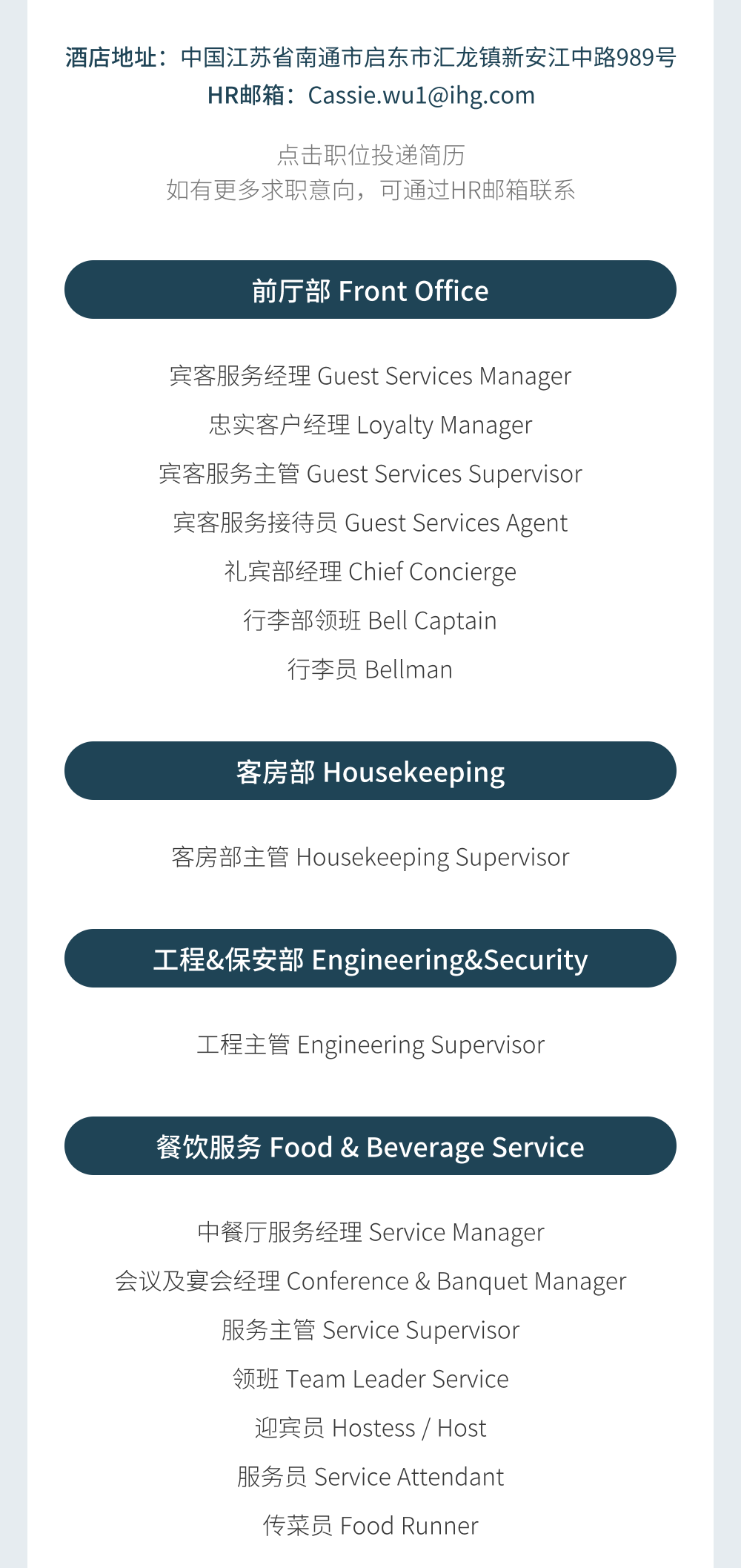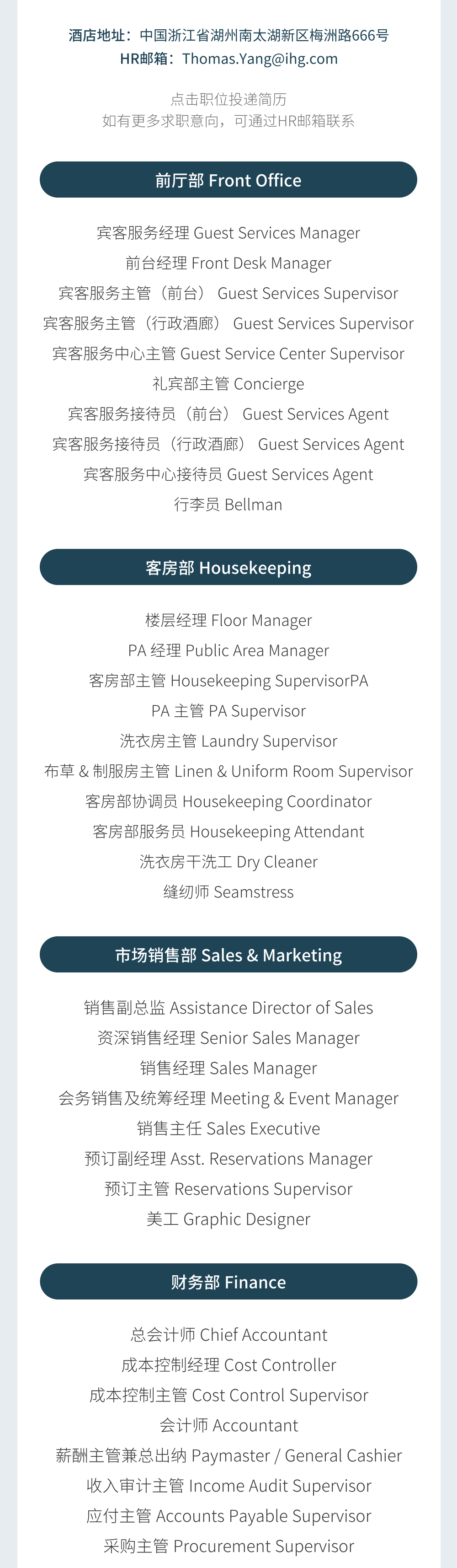 文章内容来源于公众号:洲际酒店集团招聘,点此可查看原文,内容版权归相关企业所有,本网站仅供交流学习。若涉及版权问题或存在侵权情况,请及时与我们联系,我们将第一时间进行删除处理。