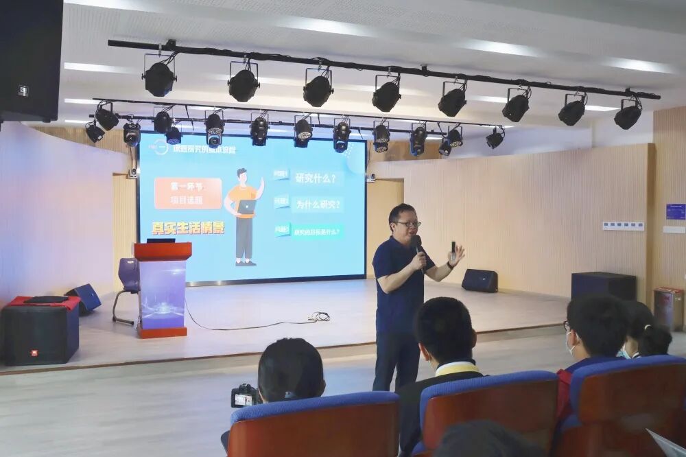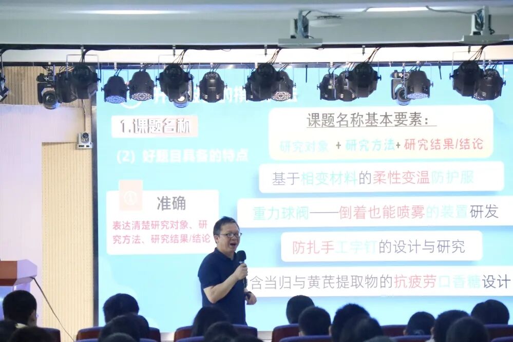 在培训中,周老师以点及面,用一个个具体的科创案例阐述了课题探究各环节的关键要点,同时又将各环节串连成线,让同学和指导老师们系统了解科创活动的全流程,期间大家也纷纷举手进行互动,同学们分享着自己的科创经历,问出了心中疑惑,思考着老师提出的问题,周老师也与同学们热情互动,悉心回答着大家的提问,启发着同学们思考。