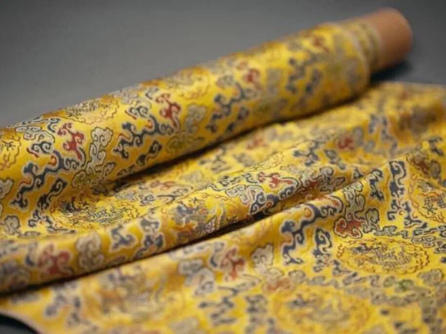 云锦是南京特有的传统提花丝织物,以其华贵,多彩灿烂,变换如云霞而得名。它由弹性好、光泽佳、柔韧度高的优质蚕丝制成,在明清时代非常流行,供宫廷服饰和赏赐用。诗人对云锦妆花用色变化丰富,配色鲜艳大为欣赏,还道出云锦图案高贵庄重,布局设计新奇。