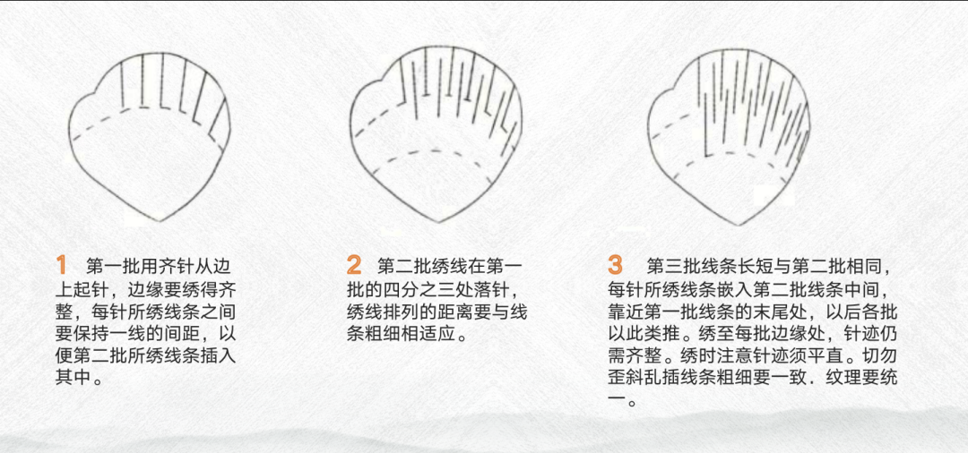 利用不同色彩的绣花线,苏绣中的齐针、套针完成图案刺绣。