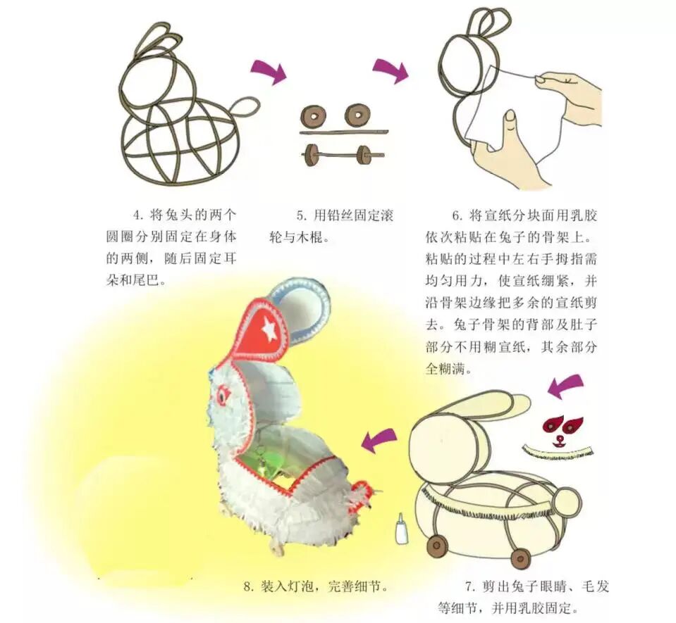 兔年遇兔灯,拉着它走街串巷,寓意将人畜兴旺、五谷丰登的好运传遍街头巷尾。同学们一起来尝试做一下吧!