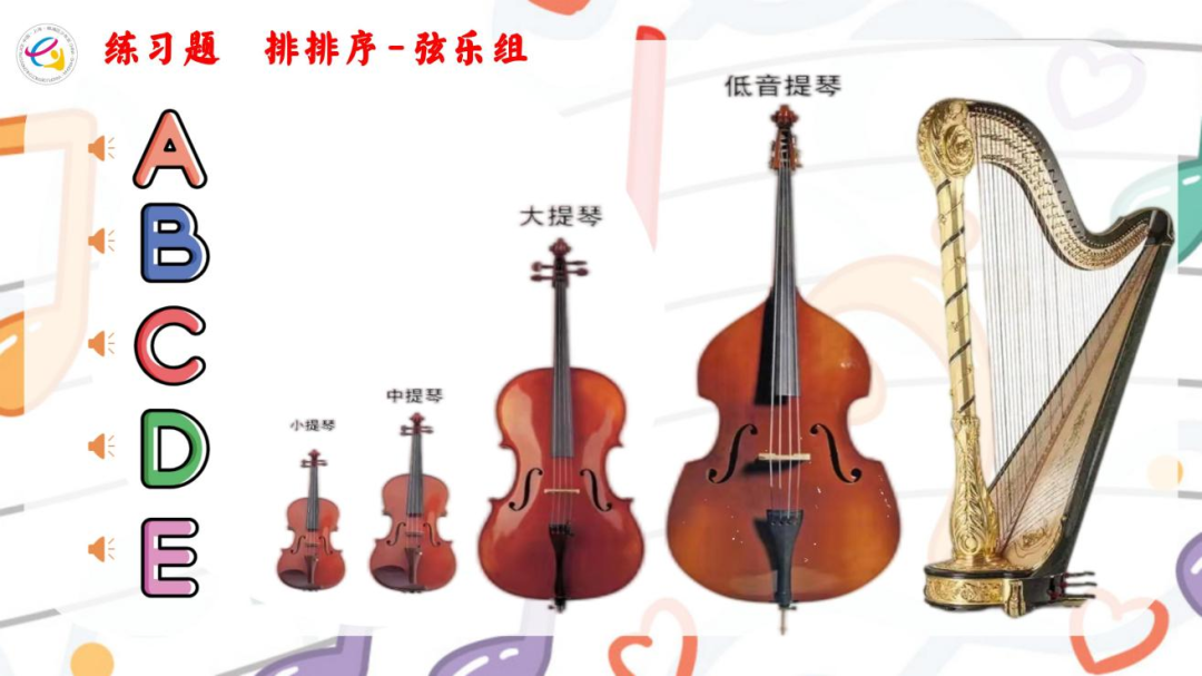(小提琴、中提琴、大提琴、低音提琴、竖琴)