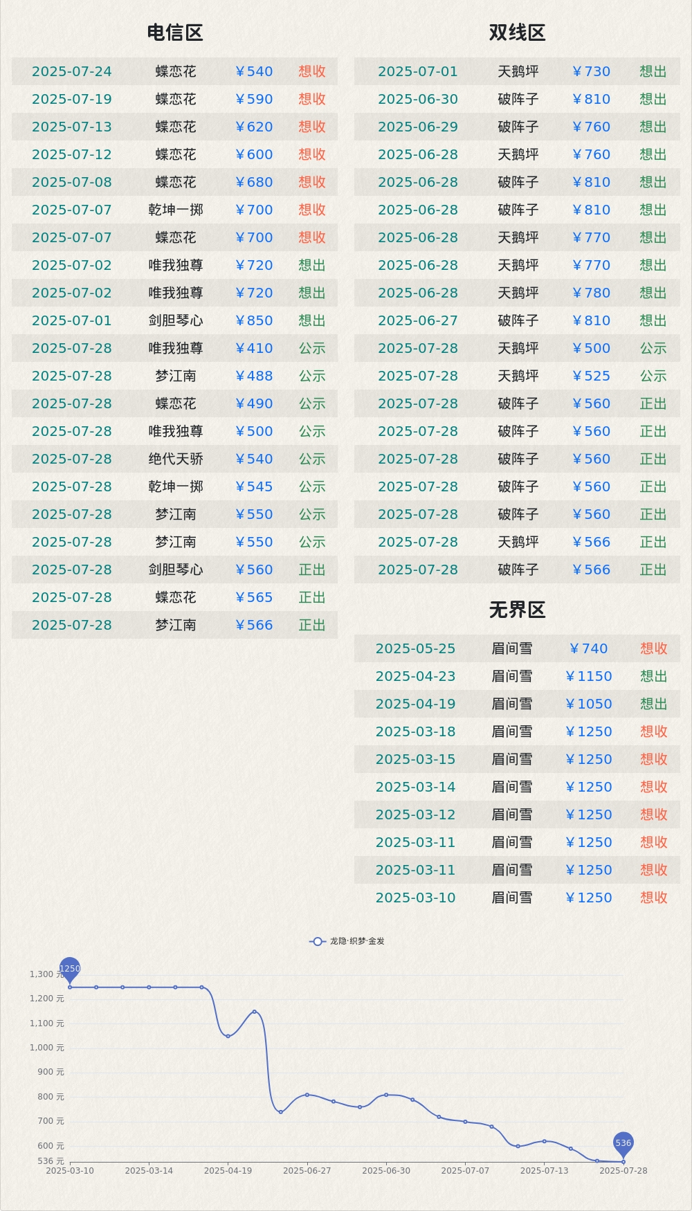 点评:还在跌,这个金发有好几个偏色,目前最贵的应该就是织梦。年初的时候应该是1100多,现在已经跌到550左右了