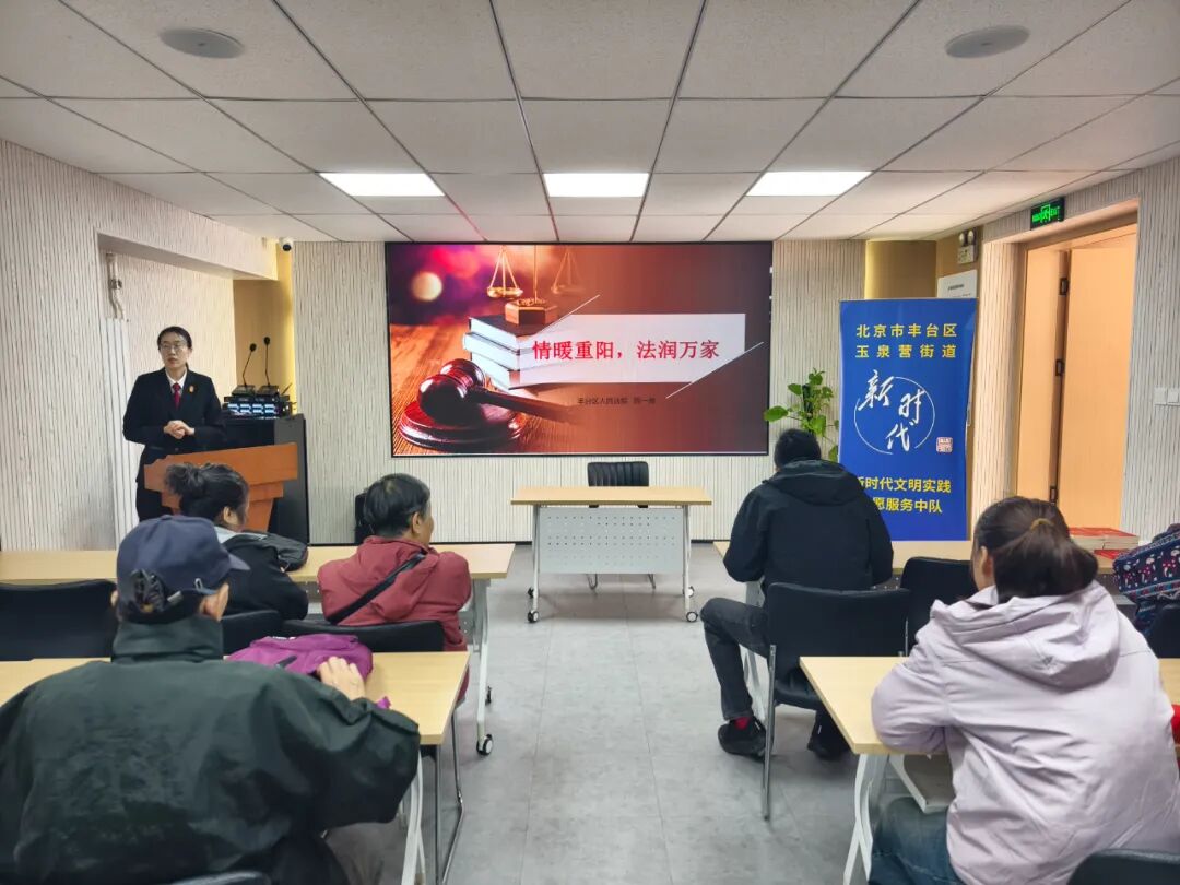 重阳节到了,丰台法院民事审判一庭干警毕凯丽、焦语晨、郭定斌组成“普法小分队”,来到“法盈玉泉”普法驿站,以“情暖重阳,法润万家”为主题,开展普法活动,现场学习氛围直接拉满!
