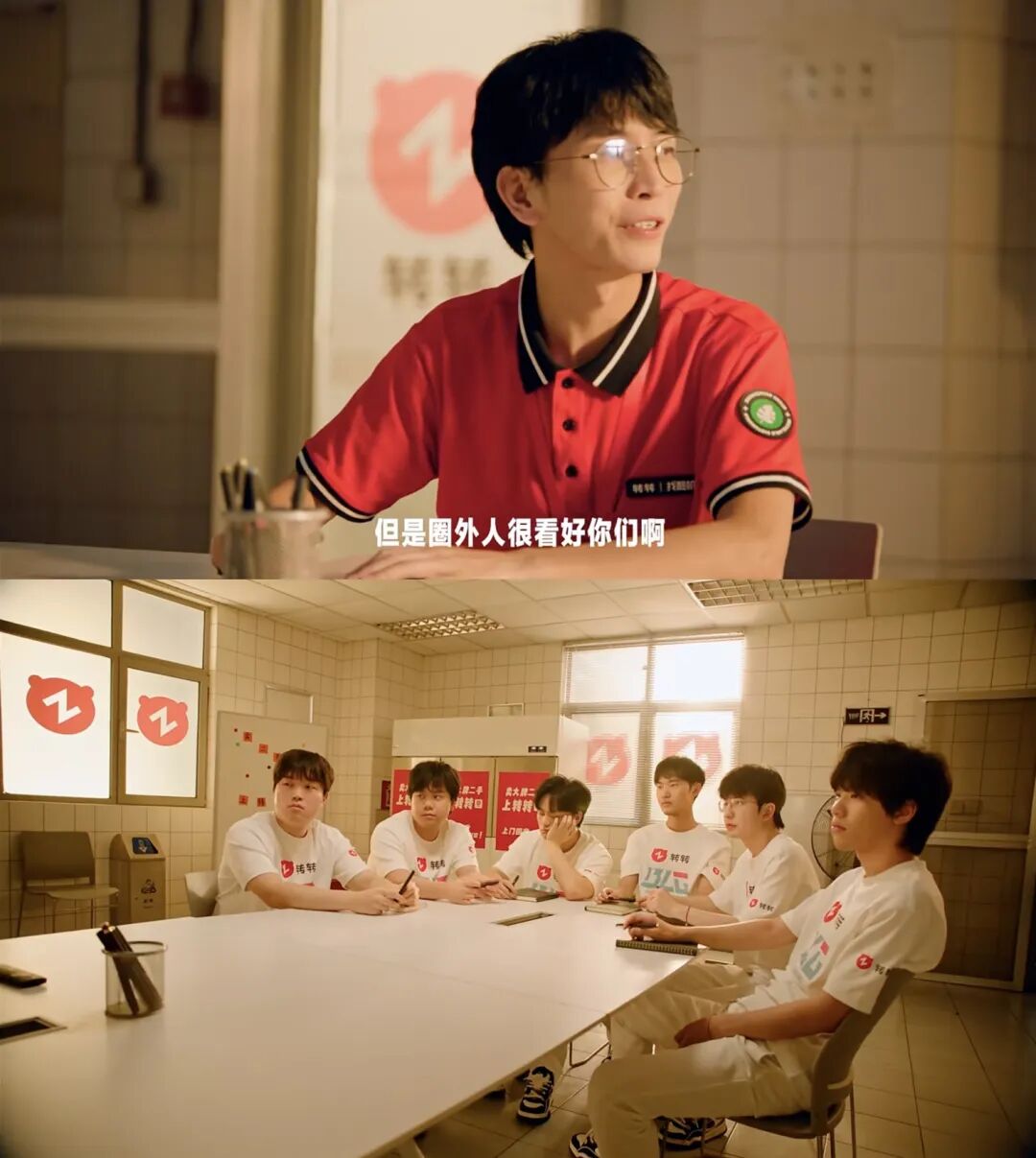 聊电竞赞助,大家默认的剧本就是选手全程主导画面,硬植入一些产品卖点,最大程度利用好战队选手的明星效应。但转转给 BLG 拍的这支抽象广告,则是将广告分为两个部分——圈外人的回答和圈内人的反应。