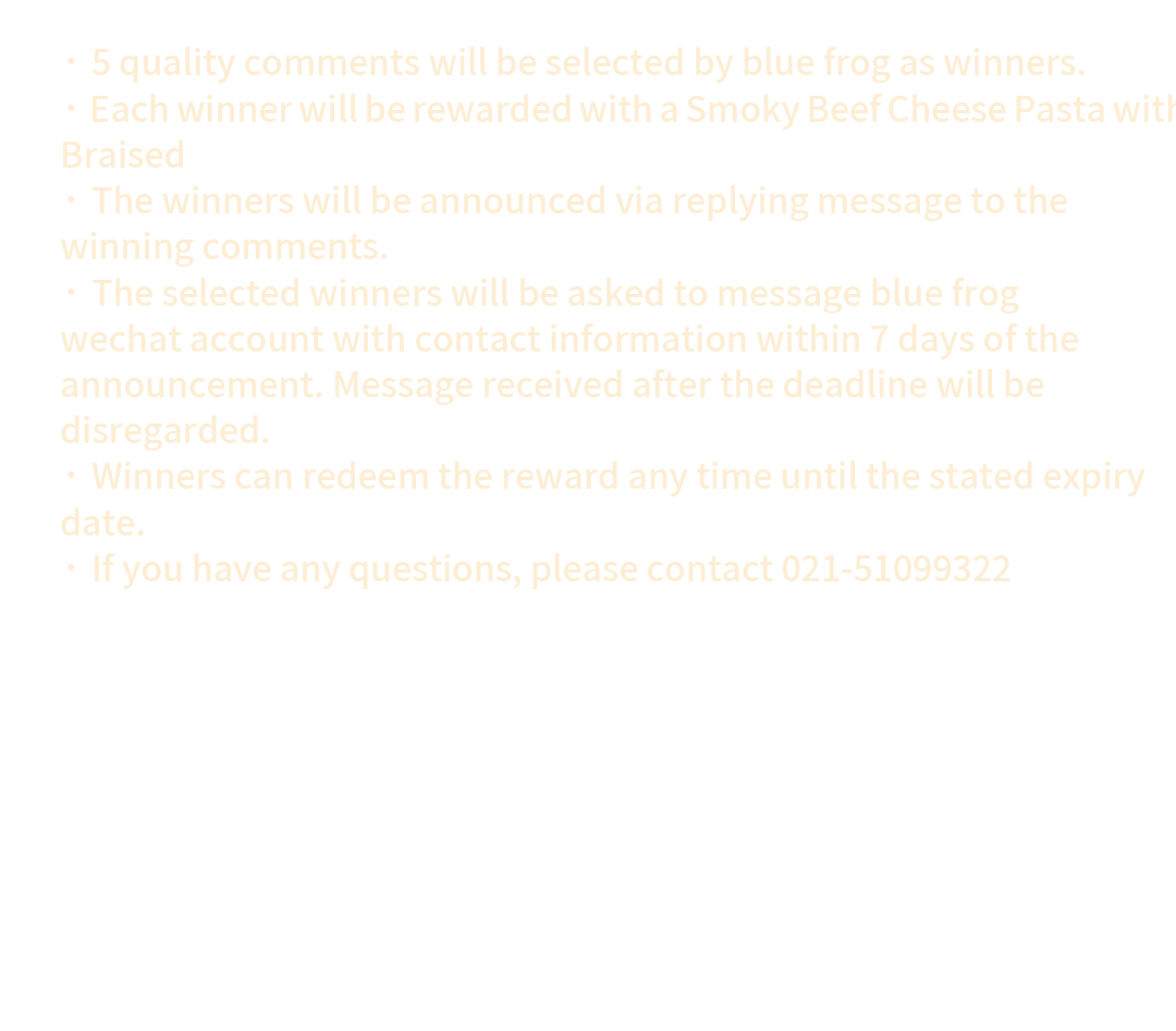 本文内容来源于公众号: blue frog蓝蛙西餐厅酒吧 ,请扫码查看原文。