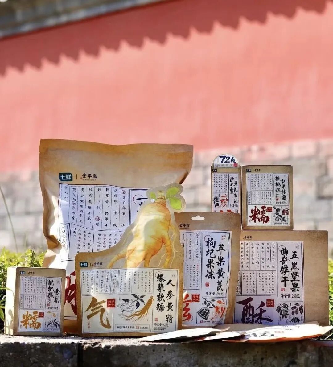 从食品到日用品,一共 14 款新品,款款都写着“我养你”。比如,拿人参爆浆软糖当零食,边 emo 边健脾养胃的黄芪果冻,还有听起来像药方但入口超香的五黑花椒山药片、坚果曲奇,养生这事,终于不再是长辈专属了。