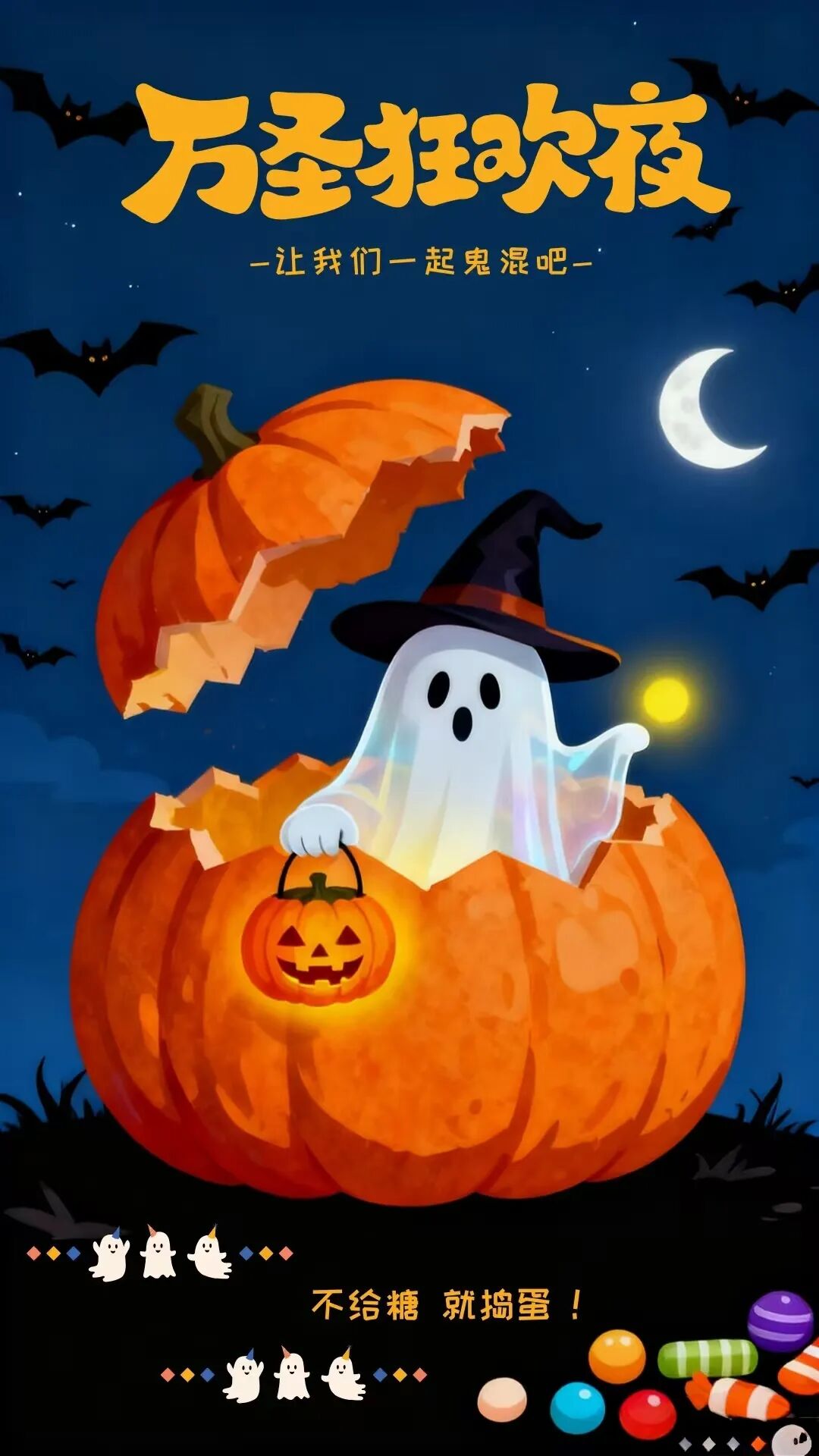 - 文案配“万圣节碎片加载中…今天也是被快乐包围的一天”,低调又有巧思,别人一看就懂。