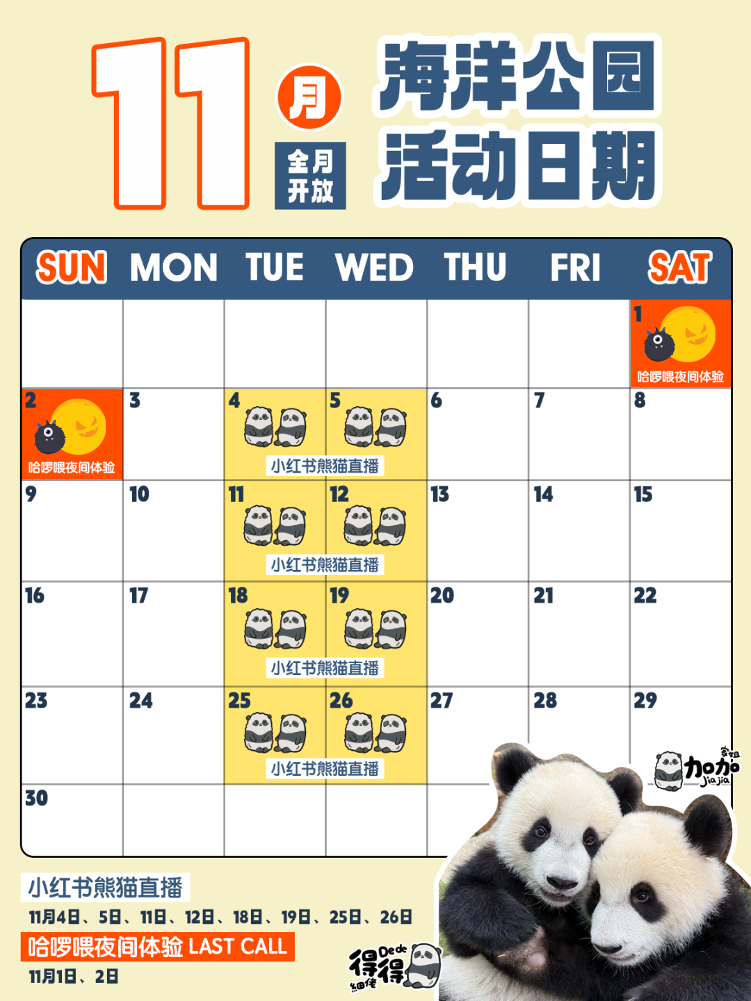 摘要:香港海洋公园11月活动日历新鲜出炉!快来安排你的行程吧~
