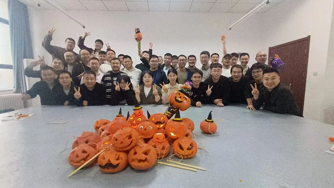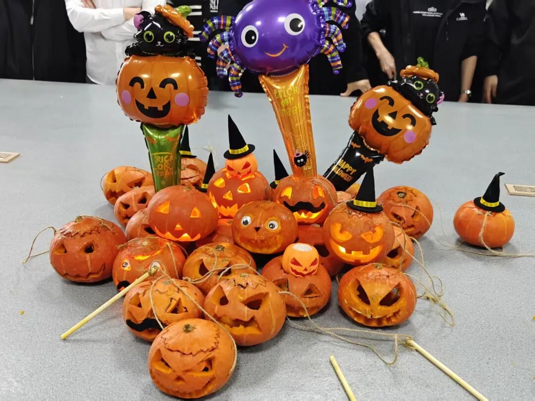 雕刻南瓜环节让教室变成了创意工坊。学员们分组协作,将工程制图的严谨用于南瓜灯设计:有的精心雕琢表情,有的创新造型,还有的巧妙刻出企业标识,让西方节日烙上中国印记。