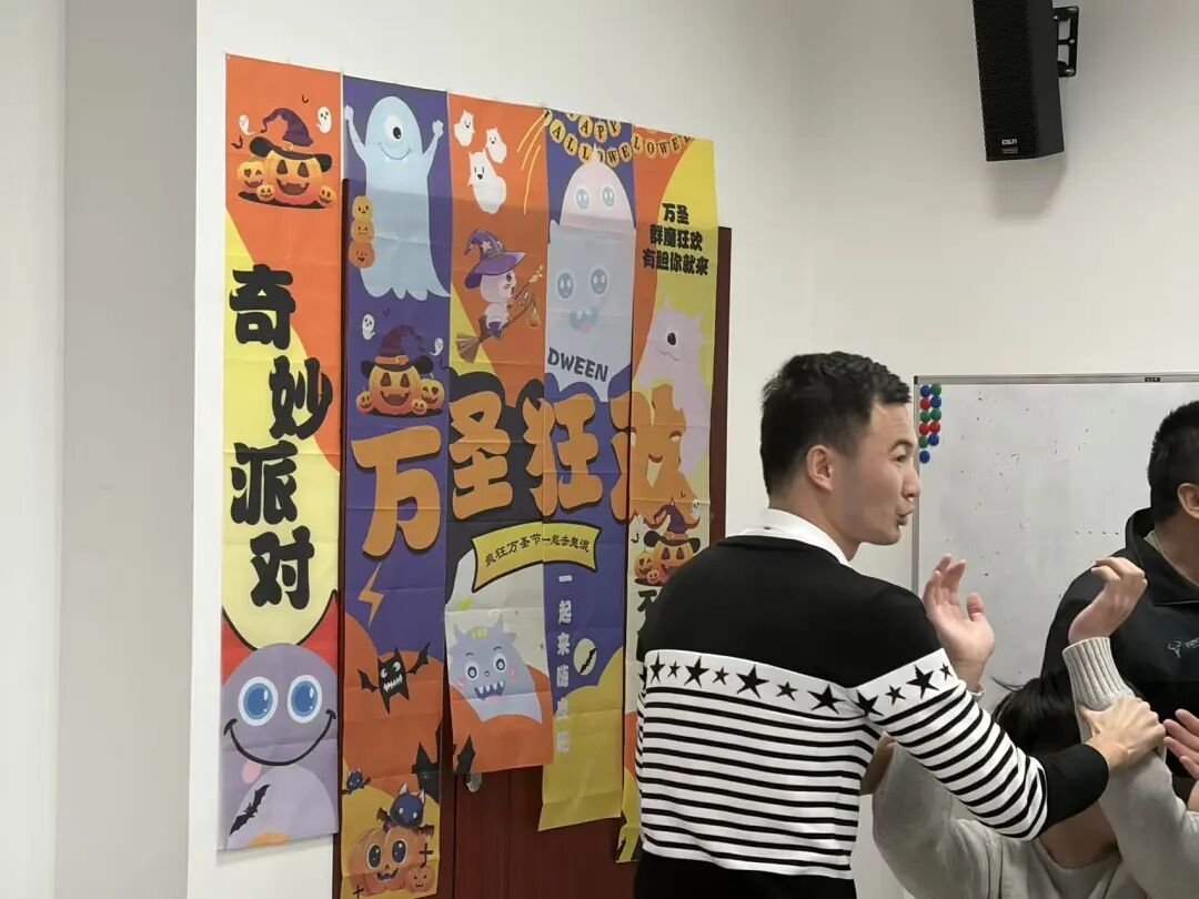 当施工图纸的严谨遇见南瓜灯的俏皮,这个秋日午后,中交集团下属公司的培训教室上演了一场东西方文化的精彩对话。朗译外语策划的万圣节主题活动,让往常专注的课堂变身奇幻乐园,为学员的英语学习之旅添上绚烂一笔。