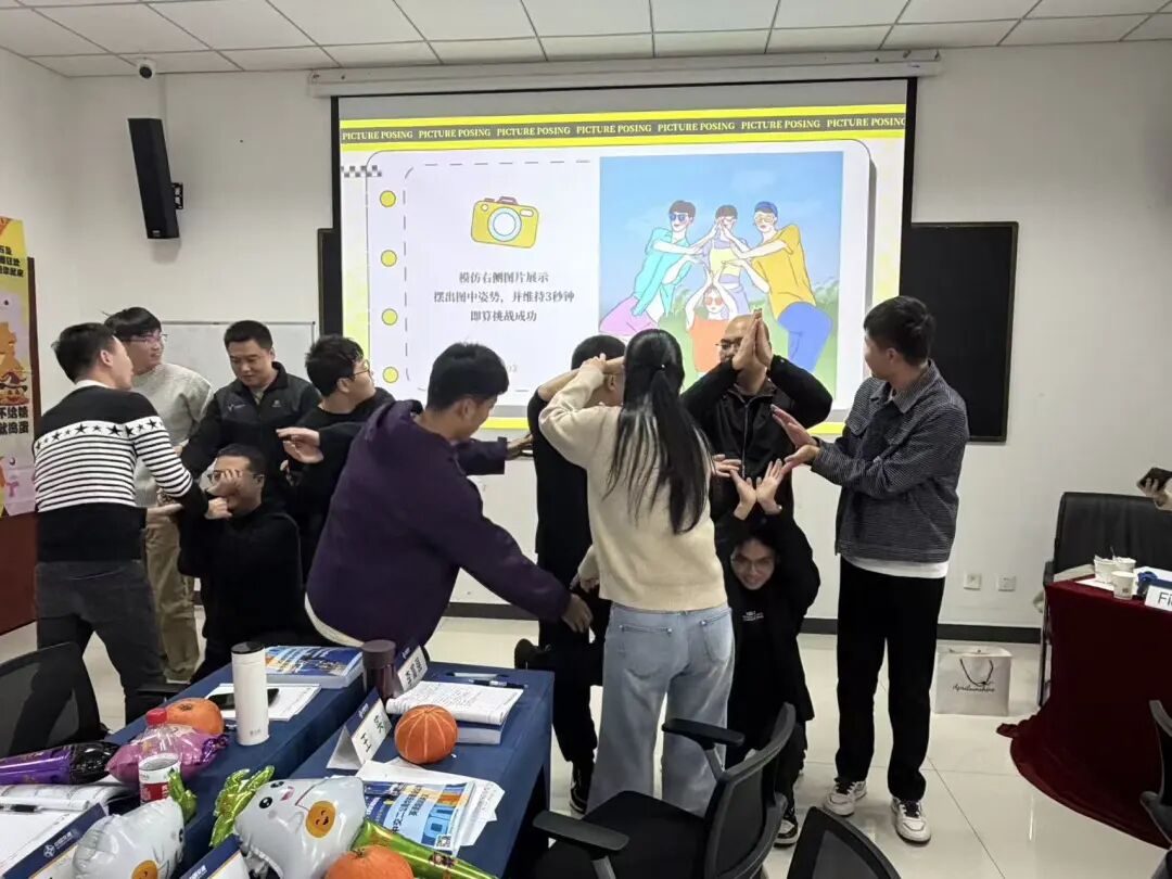 "快闪造型PK赛"将活动推向高潮。各小组需根据屏幕提示,迅速摆出对应的万圣节场景。从"女巫熬汤"到"木乃伊苏醒",学员们用身体构建画面,用默契完成挑战。