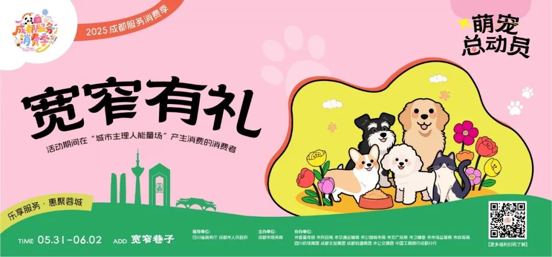 5月31日至6月2日,“2025成都服务消费季·萌宠总动员”活动将在宽窄巷子启幕。