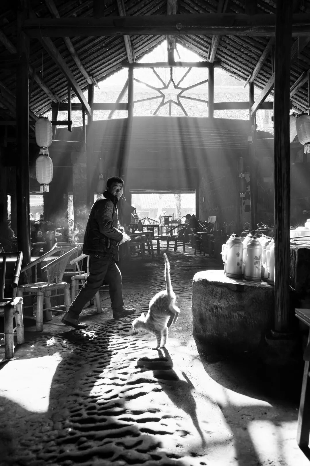 “文艺青年”钟跃民是一名摄影高手,光顾彭镇老茶馆十余载,他对光这一造型语言理解得透彻而深達。他的老茶馆作品,总会有一种被光穿透了的感受,细细品味,因这光不是仅仅停留于表象所带来的视觉愉悦,且直抵人的内心。