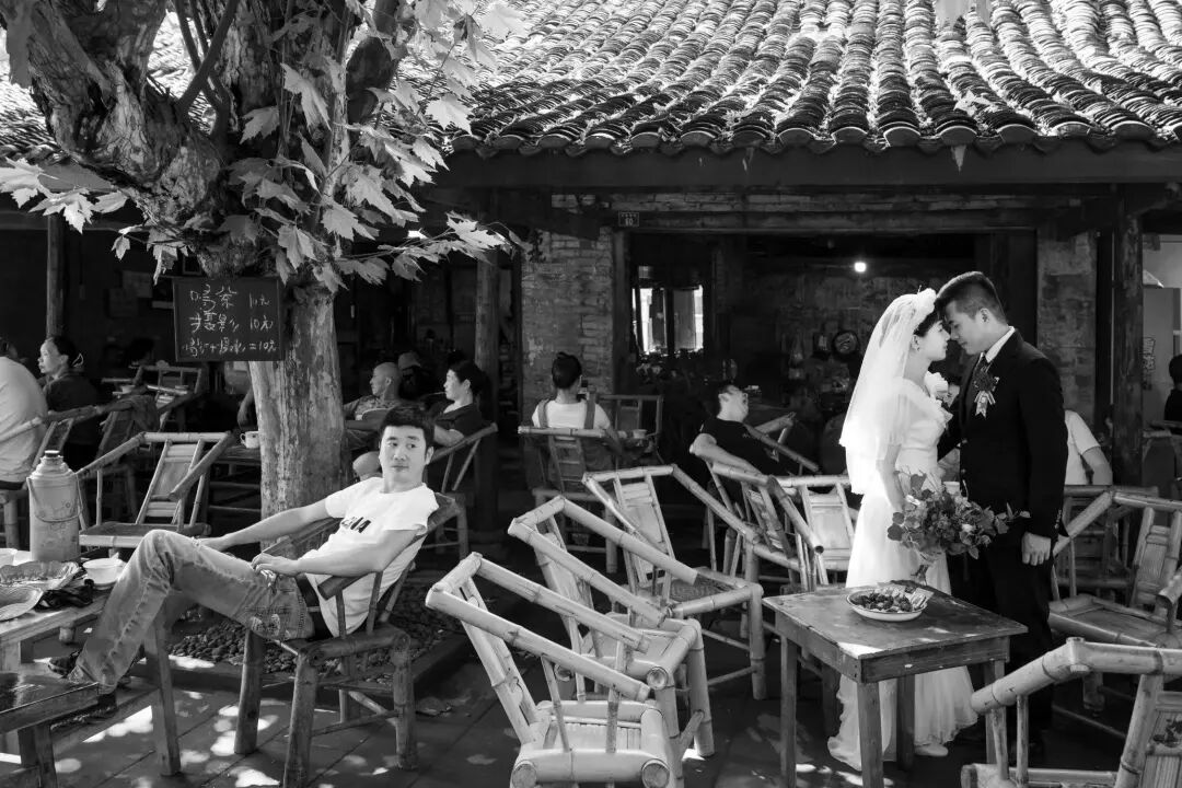 在这些照片中,有天天来这里“坐台吃茶”的97岁高龄的钟大爷,也有从全球各地慕名而来的“打卡者”,“有喝茶聊天的、参观游览的、拍婚纱、怀旧照的、玩直播、抖音的等等。”本次影像展的策展人李屏介绍说,“我们希望通过这一张张生动而有生活张力的展陈作品,让参观者在看展时,就像进入了传统与当代对撞的‘沉浸式’场景中一样,可感可及。”