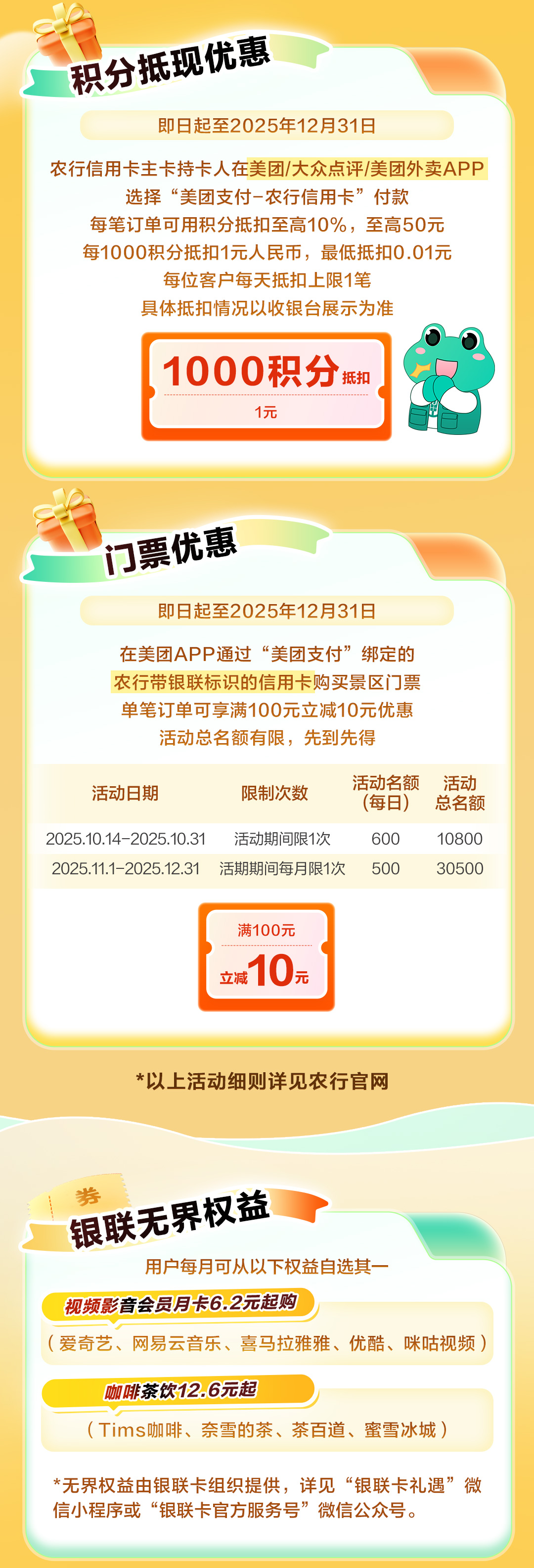 文章内容来源于公众号:农业银行信用卡,点此可查看原文,内容版权归相关企业所有,本网站仅供交流学习。若涉及版权问题或存在侵权情况,请及时与我们联系,我们将第一时间进行删除处理。