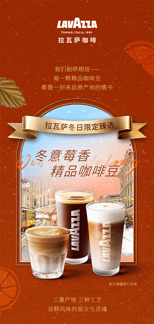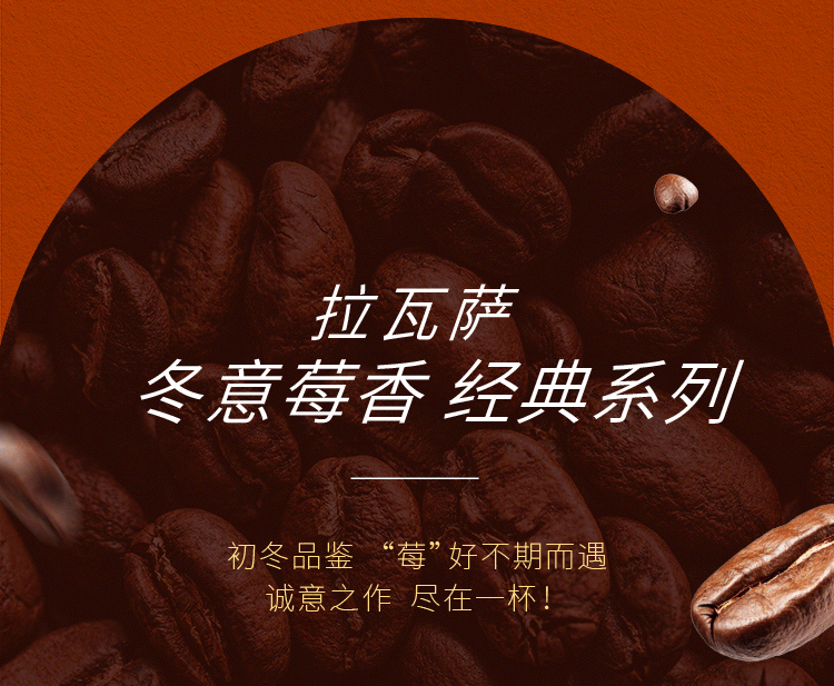 本系列饮品使用拉瓦萨冬意莓香精品咖啡豆,由埃塞·古姬、埃塞·罕贝拉、哥伦比亚·蕙兰产地拼配而成。莓果、柑橘、焦糖指使用的咖啡豆含有莓果、柑橘、焦糖的风味描述,不包含真实莓果、柑橘、焦糖成分。除本产品外,其他食品图样仅为原料或风味展示,不在售卖范围。