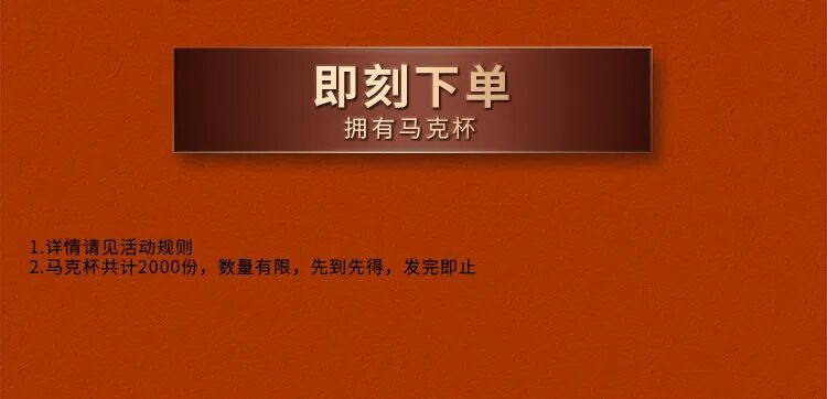1.本活动自2025年11月06日至2025年11月26日;活动期间,选购冬意莓香双杯套餐1份,套餐含:指定活动饮品2杯(选项一*1+选项二*1),选项一可选:冬意莓香豆·美式(标/大)/冬意莓香豆·鲜奶拿铁(标/大)/冬意莓香豆· 澳式白(200ml)/冬意黄油柑橘香拿铁(标),选项二可选:美式(标/大)/鲜奶拿铁(标/大)/山楂气泡美式(标/大)/沁摇鲜柠乌龙茶(标/大)/冬意莓香豆·美式(标/大)/冬意莓香豆·鲜奶拿铁(标/大)/冬意莓香豆· 澳式白(200ml)/冬意黄油柑橘香拿铁(标),即可得冬意莓香马克杯1份,共限量2000份,发完即止;冬意莓香马克杯共1款,随机发放,当日款式以餐厅实际供应为准;产品与包装以实物为准。冬意黄油柑橘香拿铁(标)2025年11月13日上市后可选,详情以套餐详情页显示为准。*如活动产品售完,则本活动提前结束。