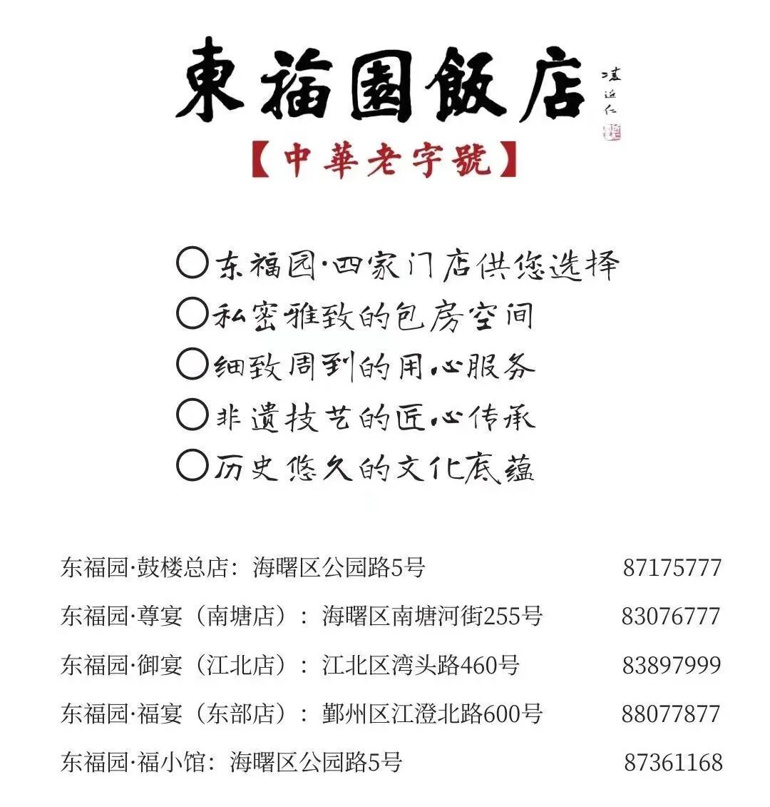 东福园始建于清光绪三十四年(公元1908年),是宁波最早的老字号品牌之一。1993年东福园被国家国内贸易部认定为中华老字号,为宁波老字号协会会长单位、首批“浙江省金牌老字号”、浙江省知名商号、国家五钻级酒家、非物质文化遗产传承基地。