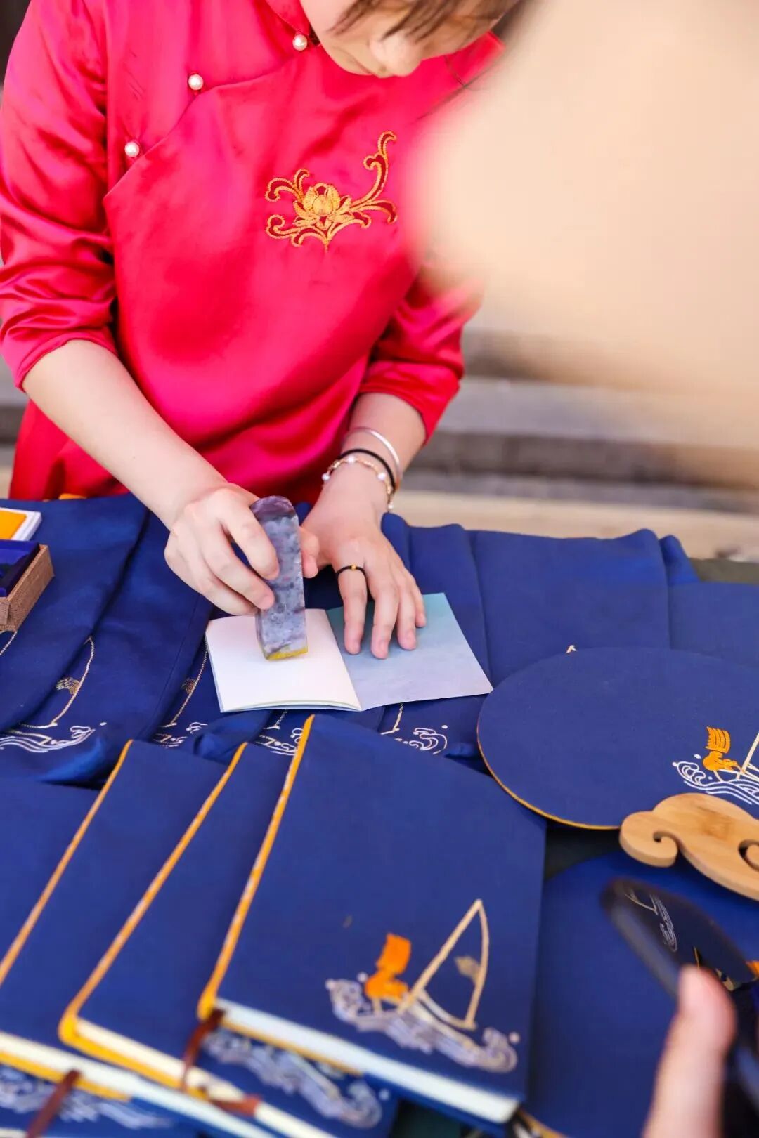 游园市集,集章打卡。参观完每一个摊位之后,就能得到一个盖章,等把所有商家都集齐完成,就能领取相应的奖励礼品,所以不少游客对这件有趣的事情兴趣勃勃。