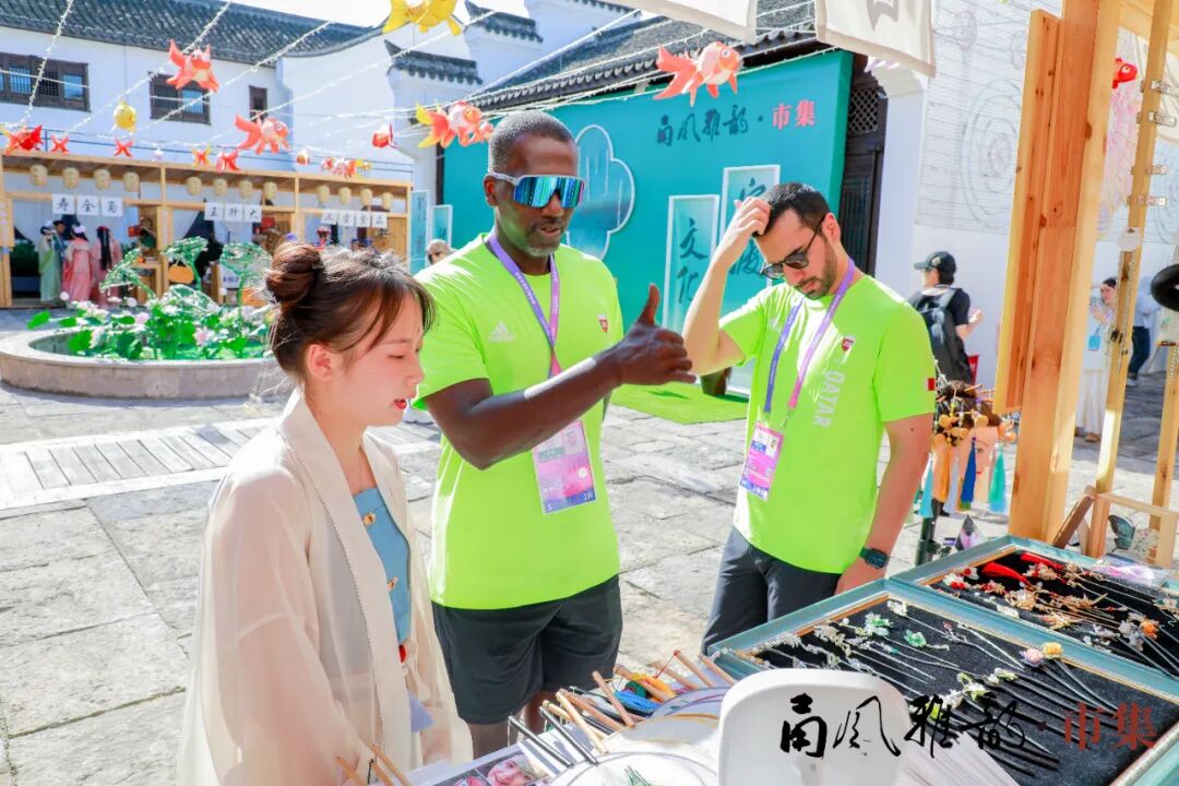 在市集活动期间,许多游客都会停留此处,迈着悠闲的步子慢慢的逛起了市集,亚运会运动员、外国友人都被老字号吸引了目光,好奇心都充斥着整个市集。