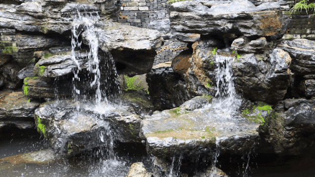 刚踏入院中的那一刻,第一时间就能听到假山那边传来的动静,流水从高处直直落到岩石上,哗啦哗啦发出悦耳的声音。