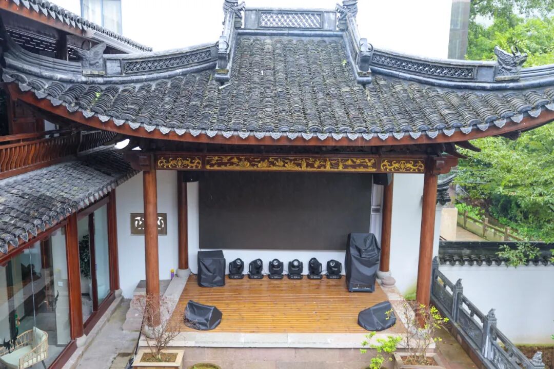 庭院中,还有一个超级大的戏台,闲时来一场露天派对也是一个不错的选择。