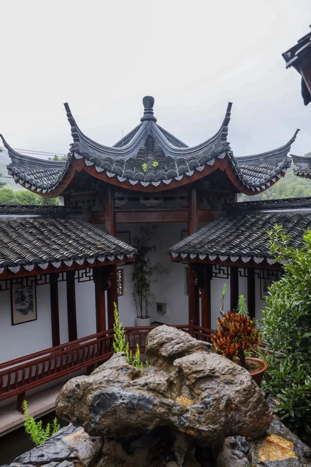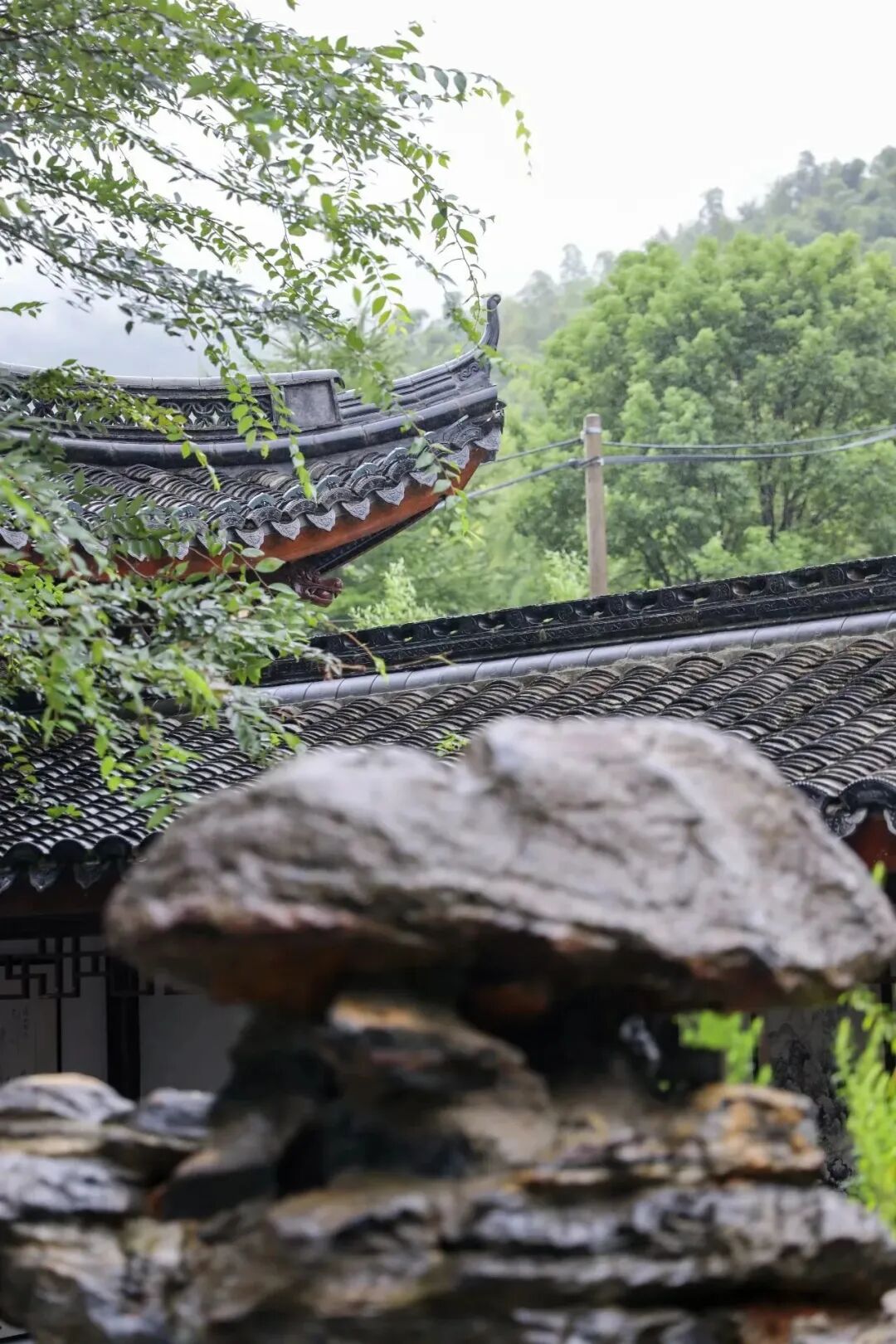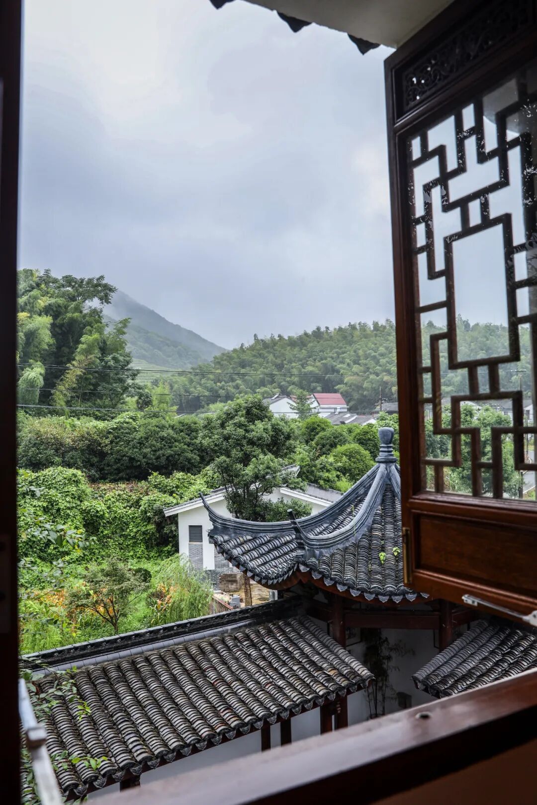 凤下溪民宿就坐落在这样一座山林原野中,看到它的第一眼就只能用“四合庭院”来形容,中式复古的风格实在是让人眼前一亮。