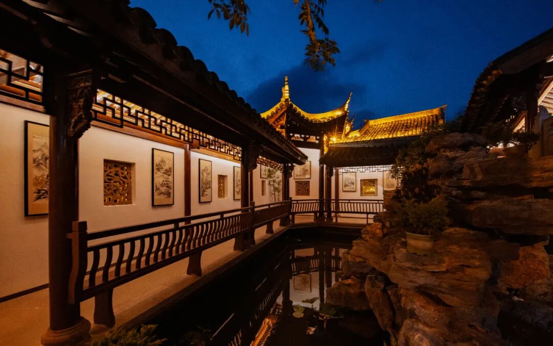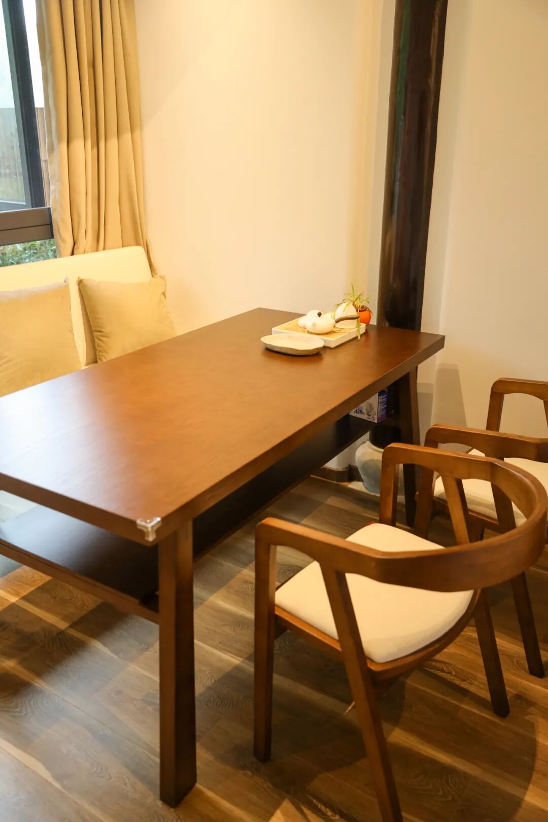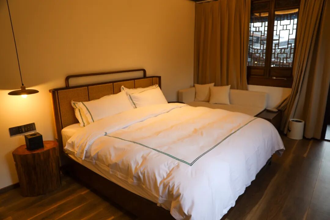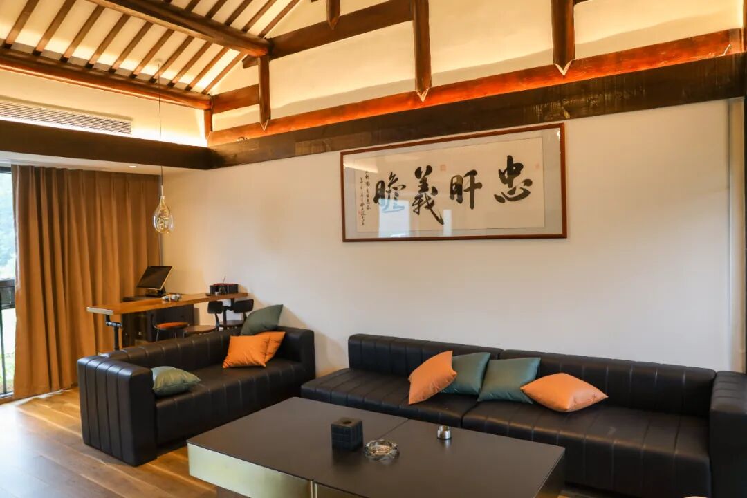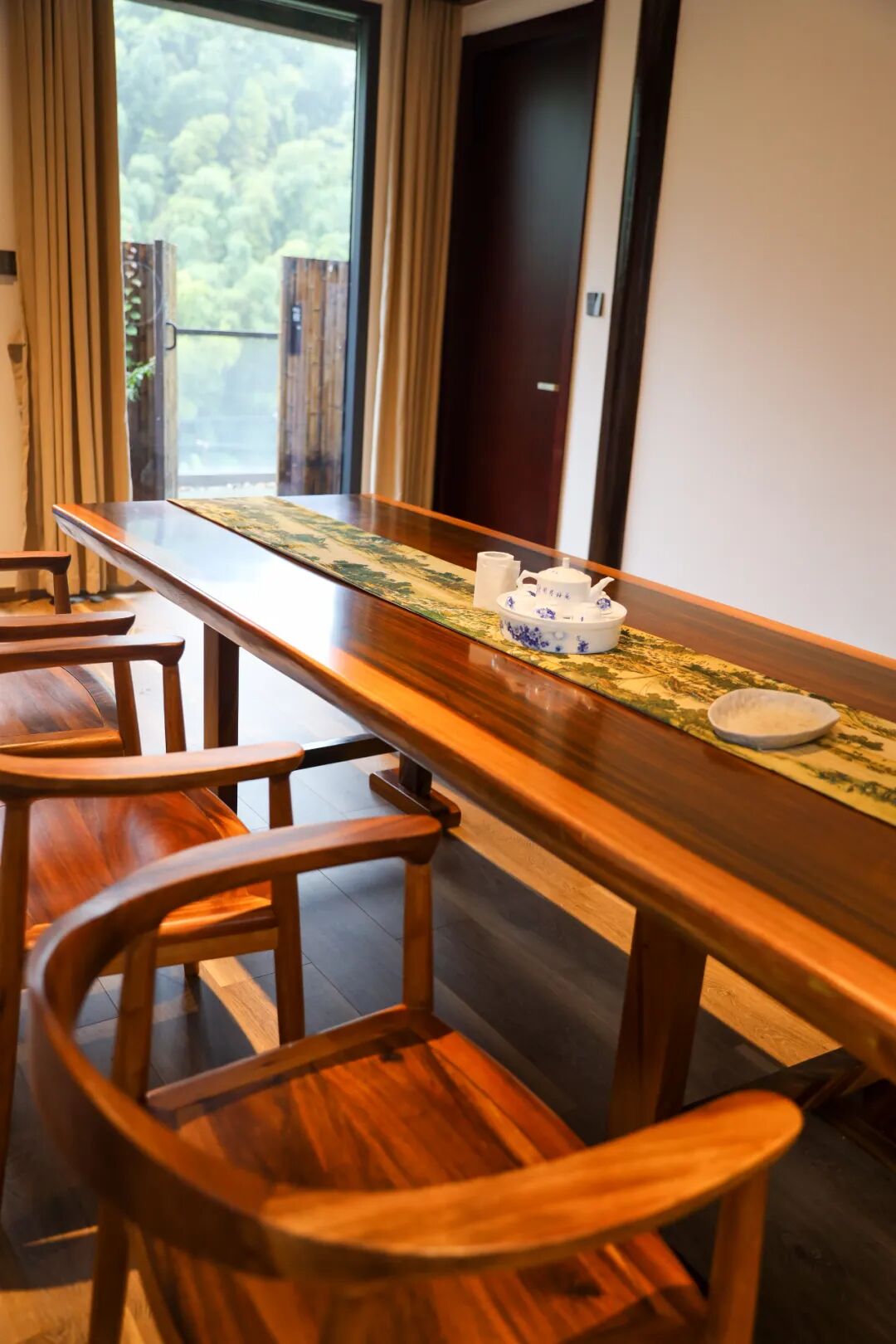 凤下溪民宿就坐落在这样一座山林原野中,看到它的第一眼就只能用“四合庭院”来形容,中式复古的风格实在是让人眼前一亮。