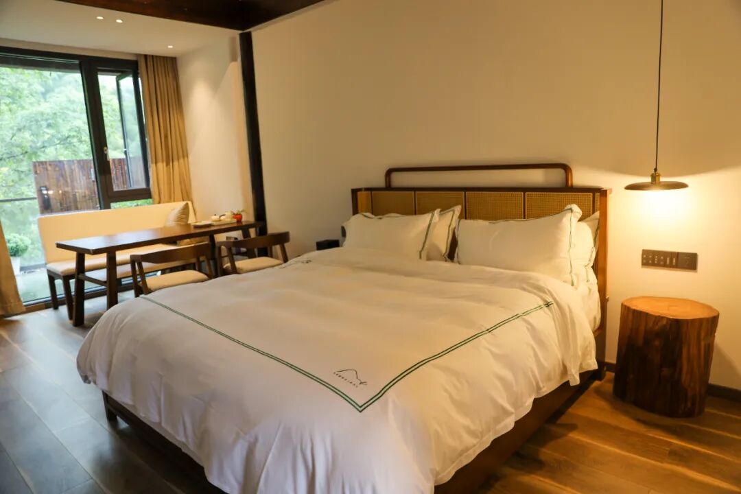 早晨起床的那一刻,推开窗户就能看到一大片山野,脱离了城市喧嚣,在山林里找寻自己的一片静谧之地。