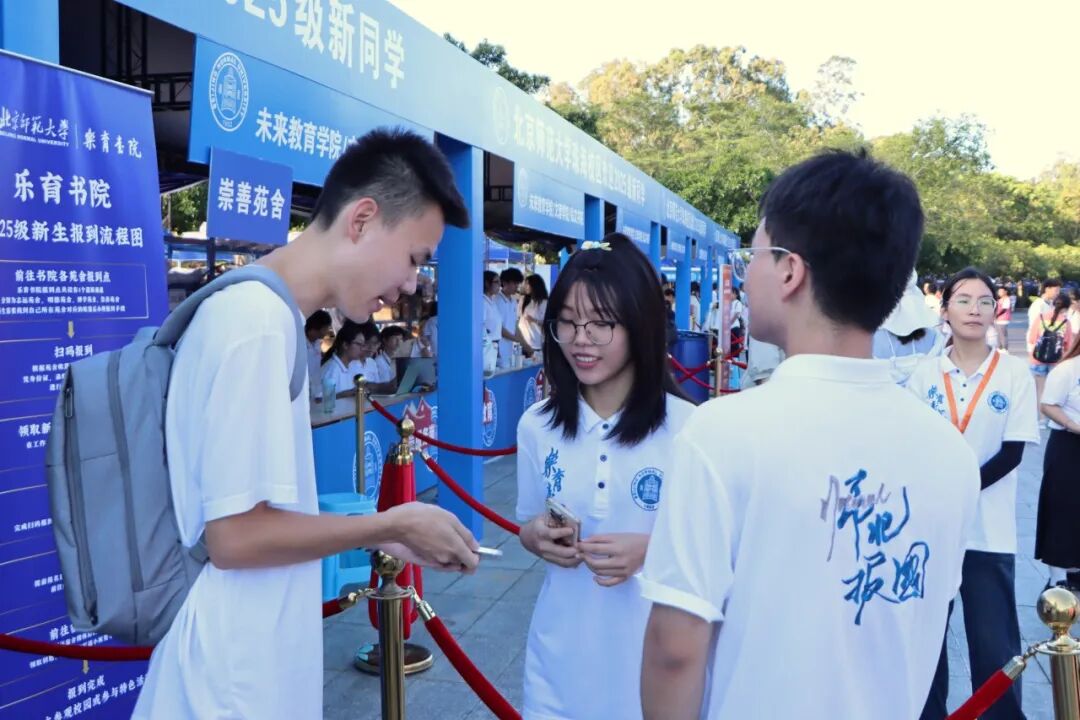 清晨7点,书院迎来首批报到新生。随着朝阳渐升,迎新广场也逐渐热闹起来。师生志愿者们以饱满的热情投入到各项服务工作中。书院老师们耐心细致地为新生及家长介绍书院育人体系和办学特色,志愿者们有序分发入学材料和专属礼包,并热情引导新生熟悉校园环境,高效地办理各项手续,为2025级新同学提供暖心服务。