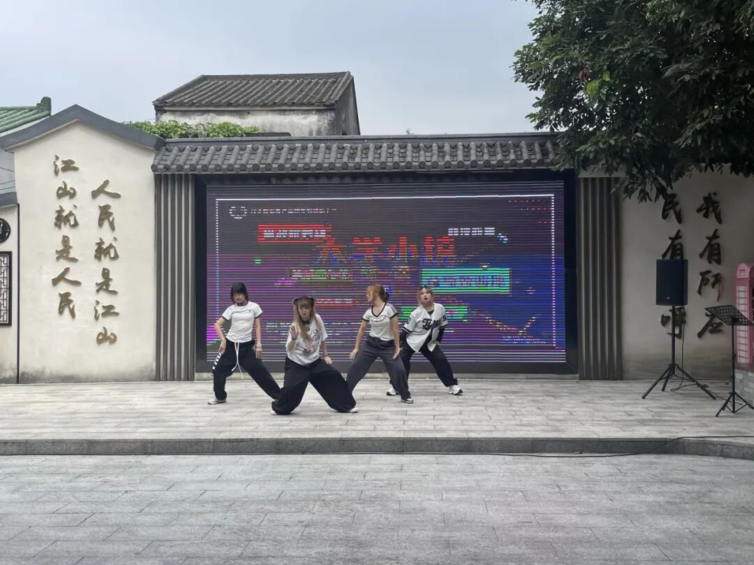 同乐义演项目宛如一场绚丽多彩的文化盛宴,将大学与小镇紧密相连,亦是知识与艺术的激情交融。共享庭院成为同学们尽情挥洒青春活力与无限才情的专属舞台。在这轻松惬意的氛围之中,同学们能够随心随性,想唱便唱,让嘹亮的歌声尽情飞扬,使青春绽放出最为绚烂夺目的光彩。