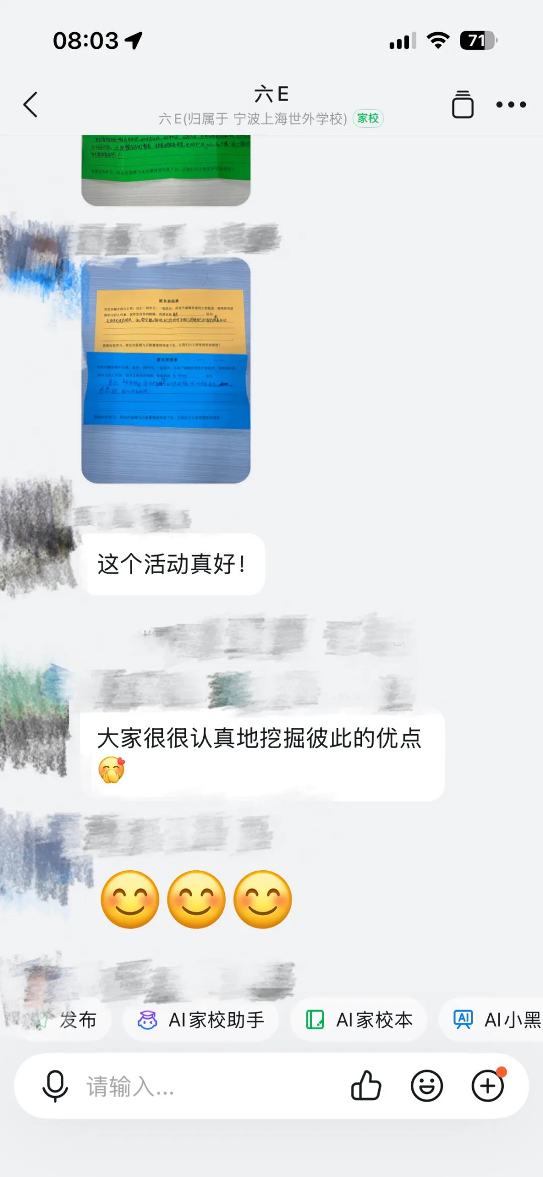 完成后的贺卡被集中展出在美术大厅的门口,一张张色彩鲜活的卡片连成一片 “感恩海洋”。路过的老师驻足观看,指尖轻抚过孩子们的字迹,眼底满是欣慰。这不仅是一份份礼物,更是师生间心与心的真诚对话。