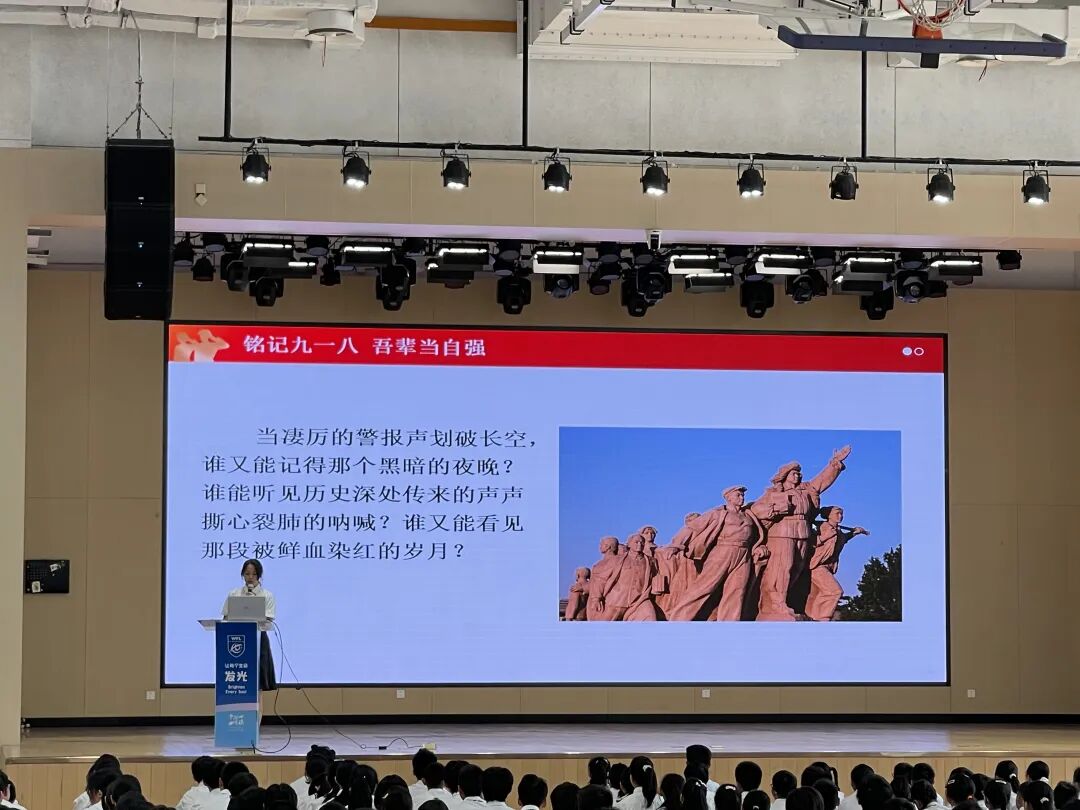 九月的每个周一清晨,初中部全体师生齐聚体育馆,以三场 “感恩” 主题升旗仪式开启新的一周。9月8日教师节前夕,八年级学生代表在国旗下分享与老师的温暖过往,用真挚言行礼赞 “师恩润桃李”;9月15日,在 “九一八事变” 纪念日来临之际,学生代表以 “铭记九一八,吾辈当自强” 为题进行演讲,爱国感恩的信念深植心间;9月22日临近中秋,学生代表细数父母日常的付出,让 “寸草心报三春晖” 的温情从校园延伸至家庭,三场仪式串联起师恩、家国与亲情,让感恩的初心在晨光中愈发坚定。