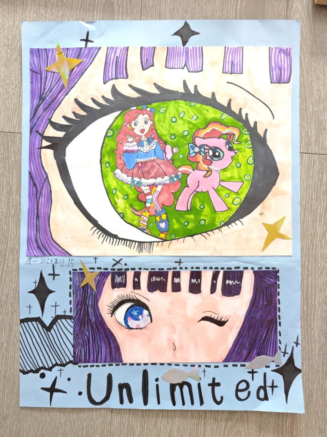 大家好,我是2A班的虞一,我是个乐观的白羊座女孩,我学习画画已经两年了,从幼儿园时期的美人鱼到圣诞老人,爸爸妈妈总是给我大大的认可,这让我对画画越来越自信和着迷。随着年龄的长大,我开始接触不同的画画形式,线条画、平面画、卡通画、水彩画、创意画、蜡笔画。
