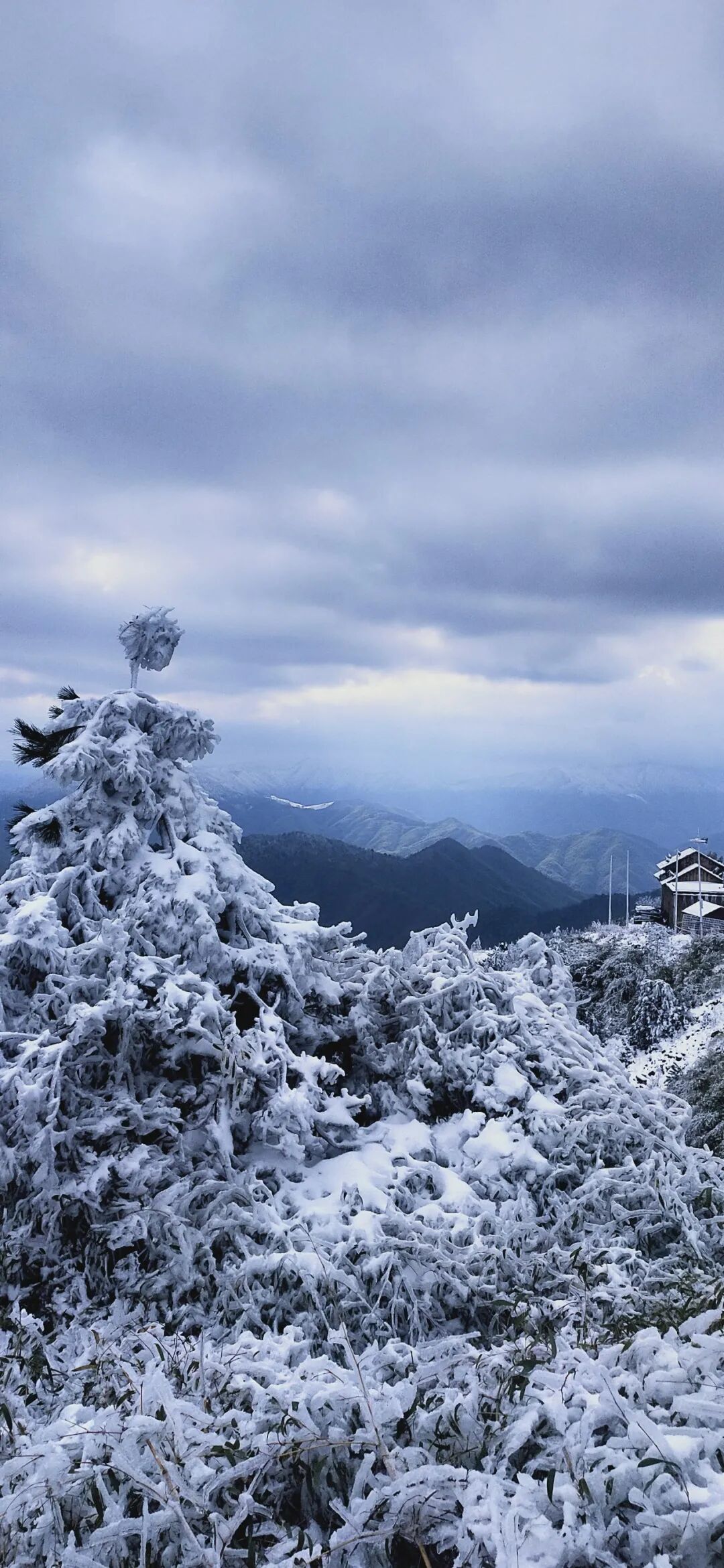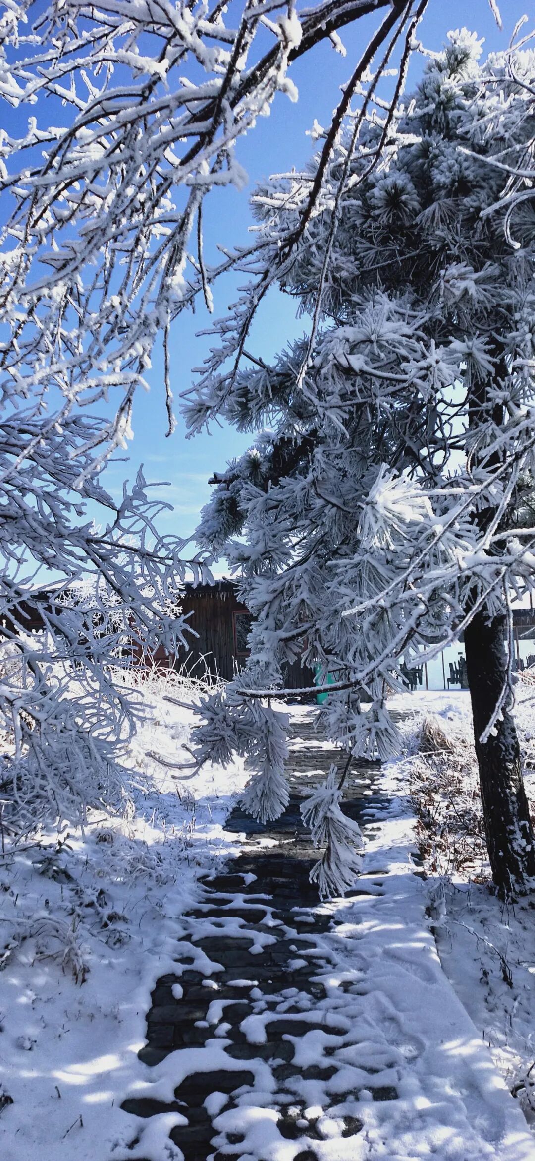雾气环绕间,水汽凝成雾凇。