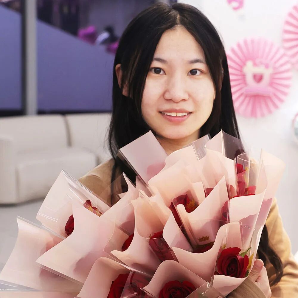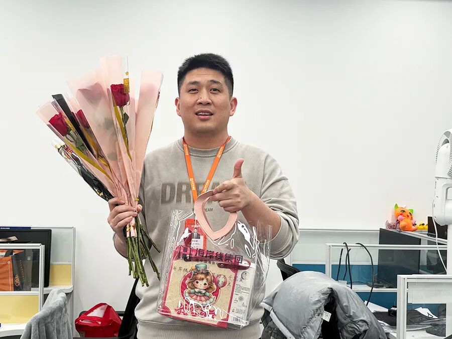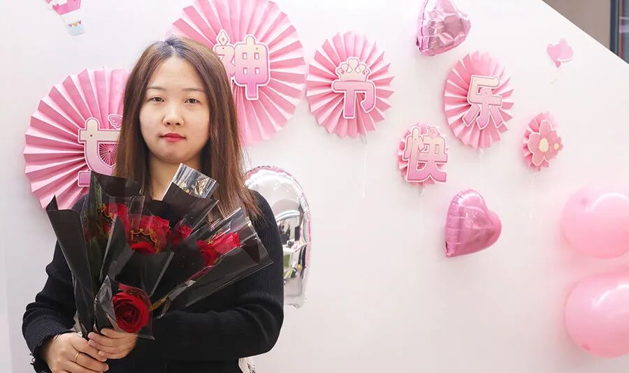 “太用心了,情人节都没有收到男朋友的鲜花,女神节竟然收到了公司送的玫瑰,原来这就是被人牵挂的感觉,大爱我司~”