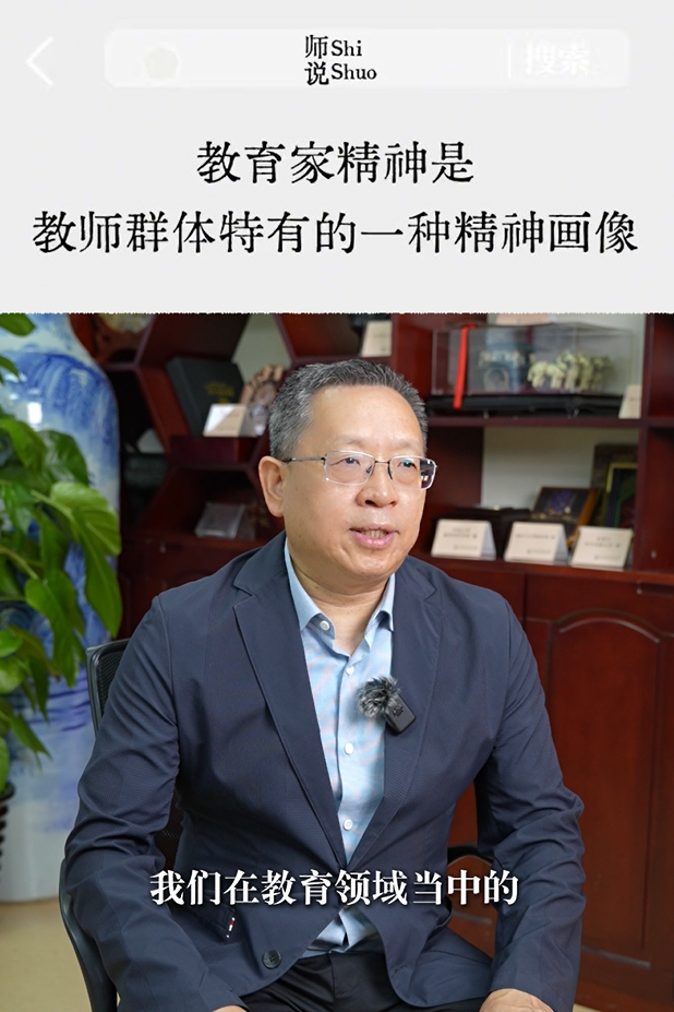 在本次访谈中,朱旭东部长围绕教师角色、教育家精神及教育实践等话题展开分享。他指出,当前教师任务增多,需兼顾教书育人、专业服务,还需应对人工智能等新需求,扮演终身学习者、家庭教育者等多重角色,需通过专业、职业、全能三重属性发展提升能力。朱部长认为,教育家精神是教师的“精神灯塔”,核心是心有大我、至诚报国,助力教师融入教育强国建设。他建议教师坚持终身学习,注重实践反思,形成个人教育思想;面对新教育理念,需结合学生需求理性选择,回归教育常规与规律。谈及教师核心素养,他强调需依角色定位,如面向学生要践行“四有”好老师标准;针对教师教育者培养,现有体系需进一步完善以提升其学术与研究能力。此外,他建议教师树立循证意识,利用便捷手段收集教育数据;接手新班级时,可从制定行为规范、营造“家”的氛围入手,培育积极教室文化。