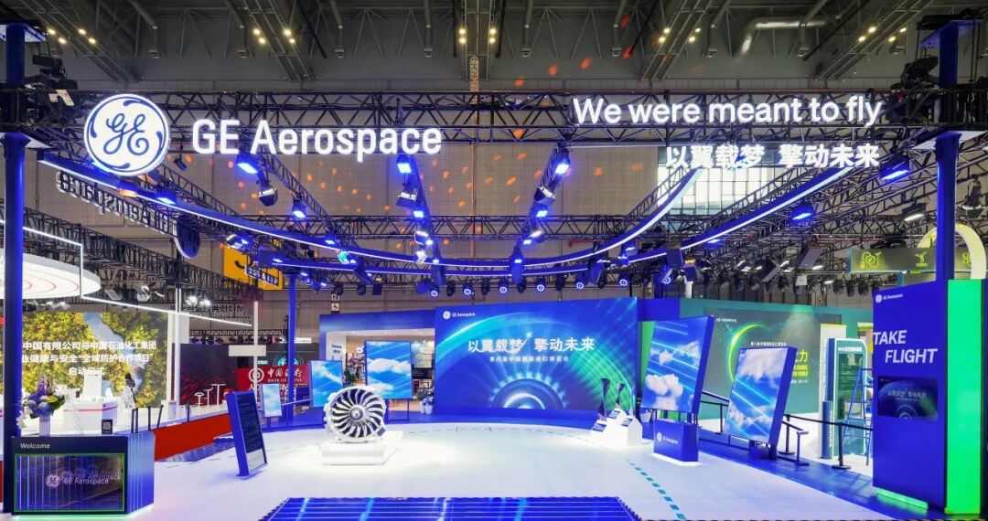 2025年11月6日,中国上海 – 在入华45周年之际,GE航空航天携两大新展品亮相中国国际进出口博览会(以下简称“进博会”),以“以翼载梦,擎动未来”为主题,首次在中国展出LEAP-1C发动机1:2剖面模型及“可触摸的LEAP发动机”混合现实互动体验装置,并签署多项在华销售与服务合作协议。