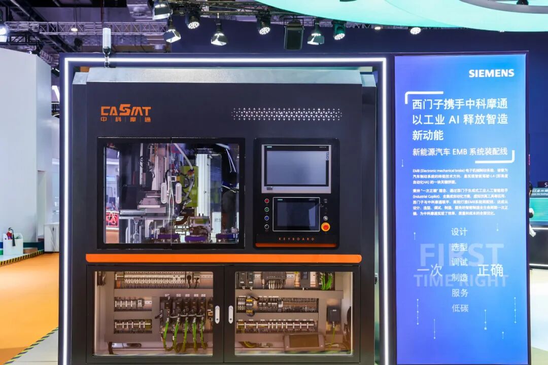 如何借助数字化和 AI 缩短汽车研发周期?西门子携手中科摩通研发的新能源汽车 EMB 智能装配设备给出了最直观的答案。这台设备率先试点应用了西门子生成式工业人工智能助手 Industrial Copilot,将原本需要 3-4 个月才能完成的刹车生产线建设压缩至仅2个月完成,充分体现了西门子“一次正确”理念在提高研发效率和生产精度上的价值。