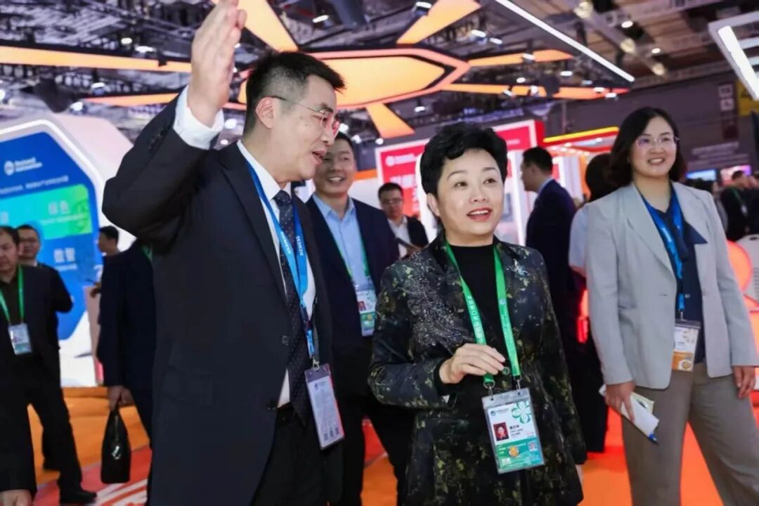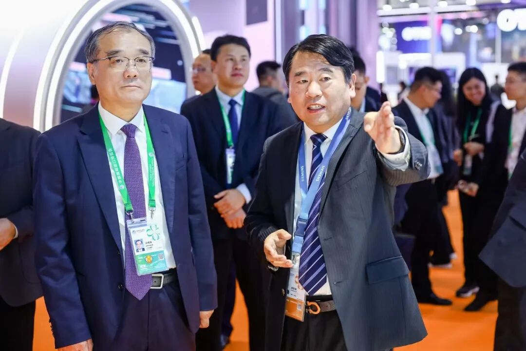 中国电气装备集团党委常委、副总经理朱安珂参观西门子展台。
