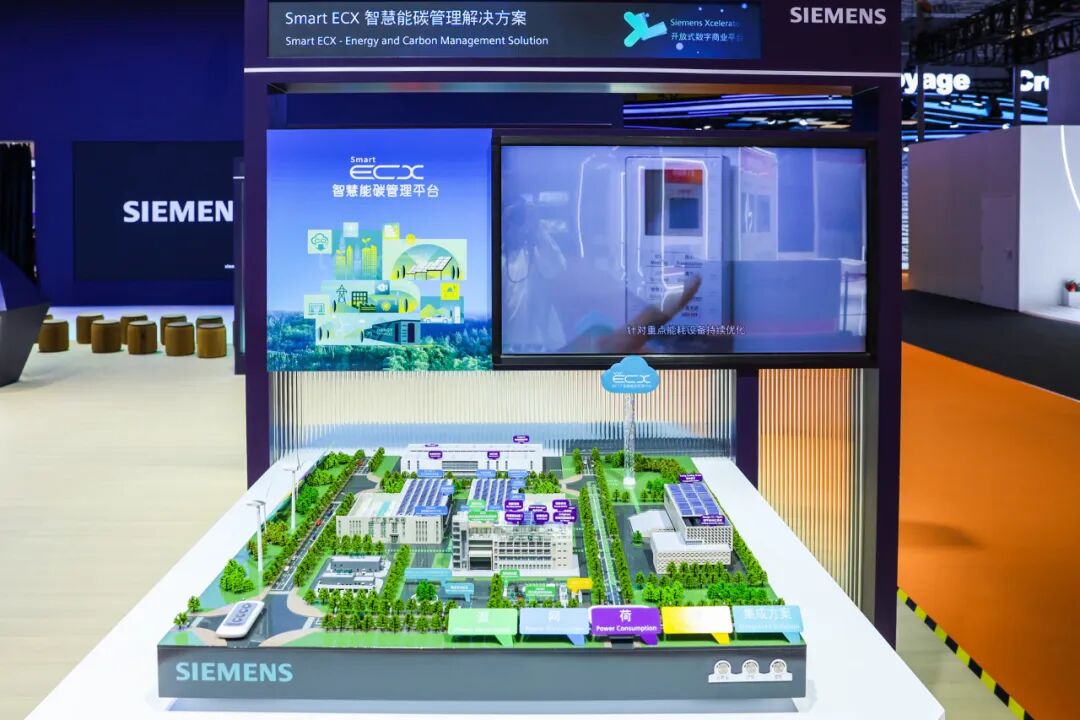 这个“微缩模型”可不一般!它还原了园区中的基础设施场景,比如制造工厂、物流基地、数据中心……展现了西门子中国本土研发的 Smart ECX 智慧能碳管理平台如何贯穿“源、网、荷、储”能源全价值链,提供一体化节能减碳解决方案。目前 Smart ECX 已在洛克美森济南工厂上线使用,助力工厂实现 100% 可再生能源碳抵消。