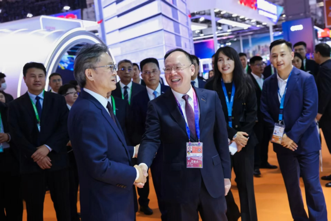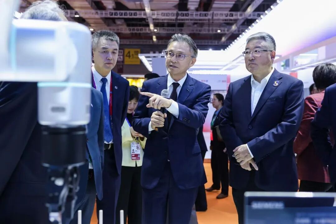 中国兵器工业集团党组书记、董事长周治平参观西门子展台。